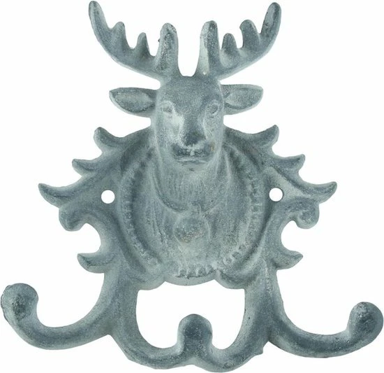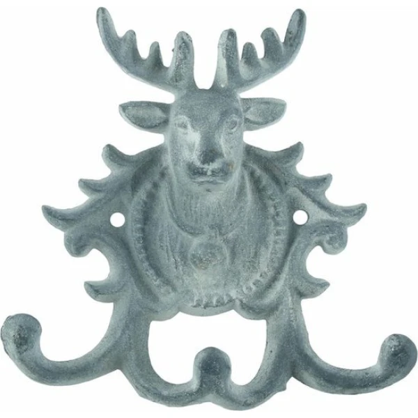 Gietijzeren Kapstokhaak Wandhaak Hert met 3 haken – Grijs