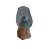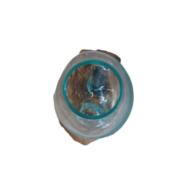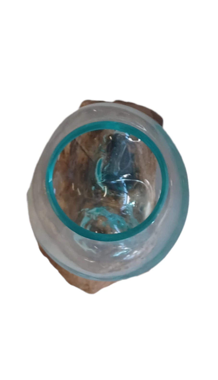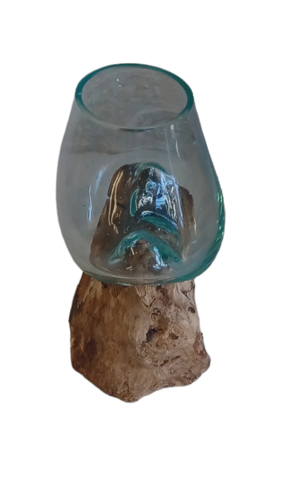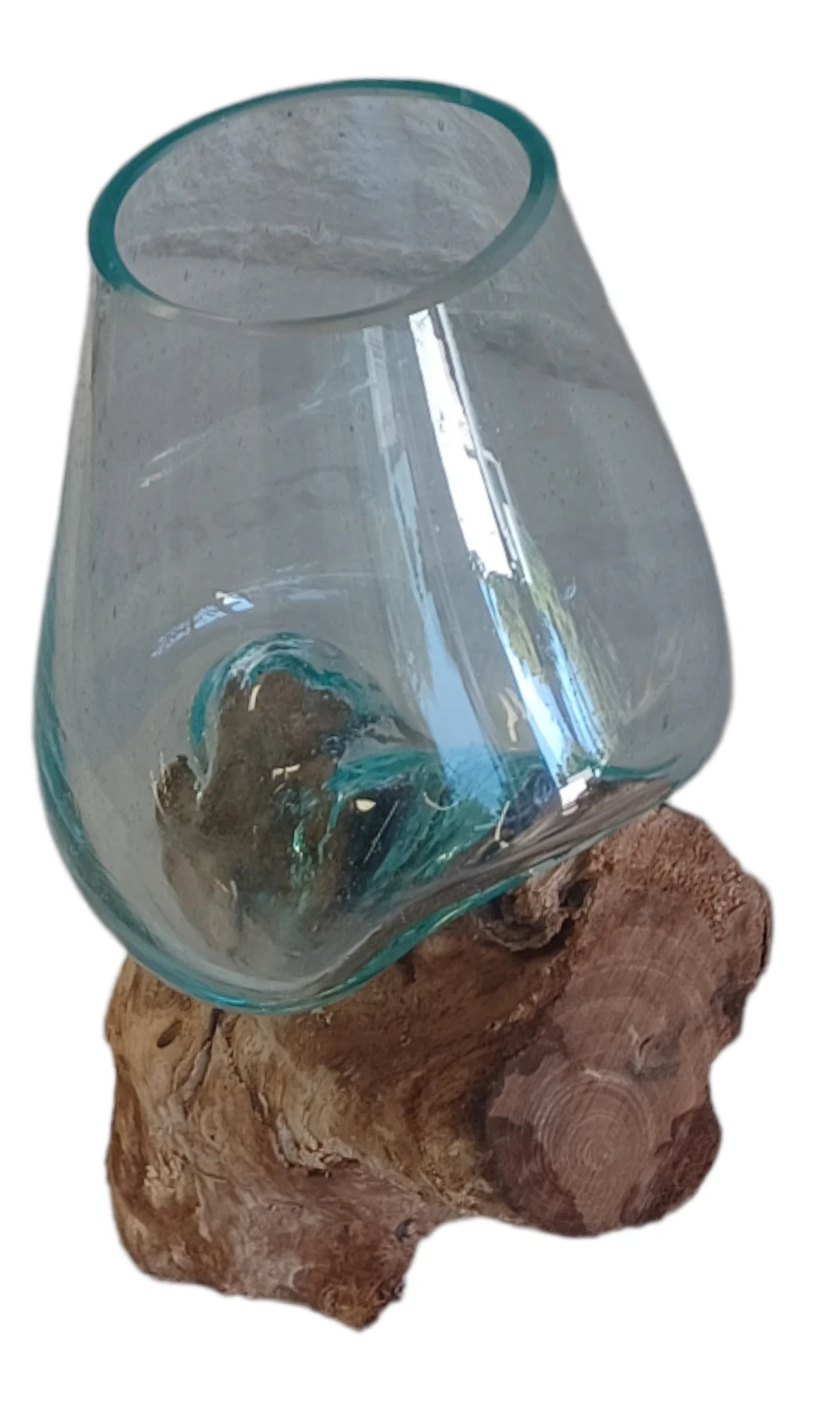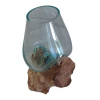 Glas gesmolten op teakhout,Vaas op Hout, Viskom Middle