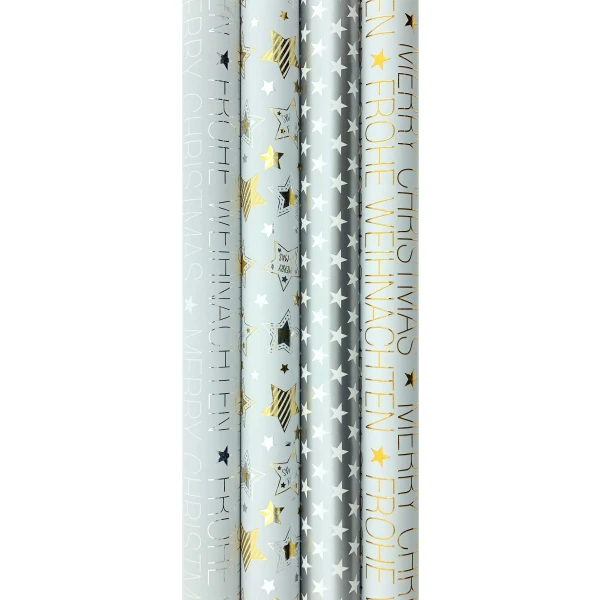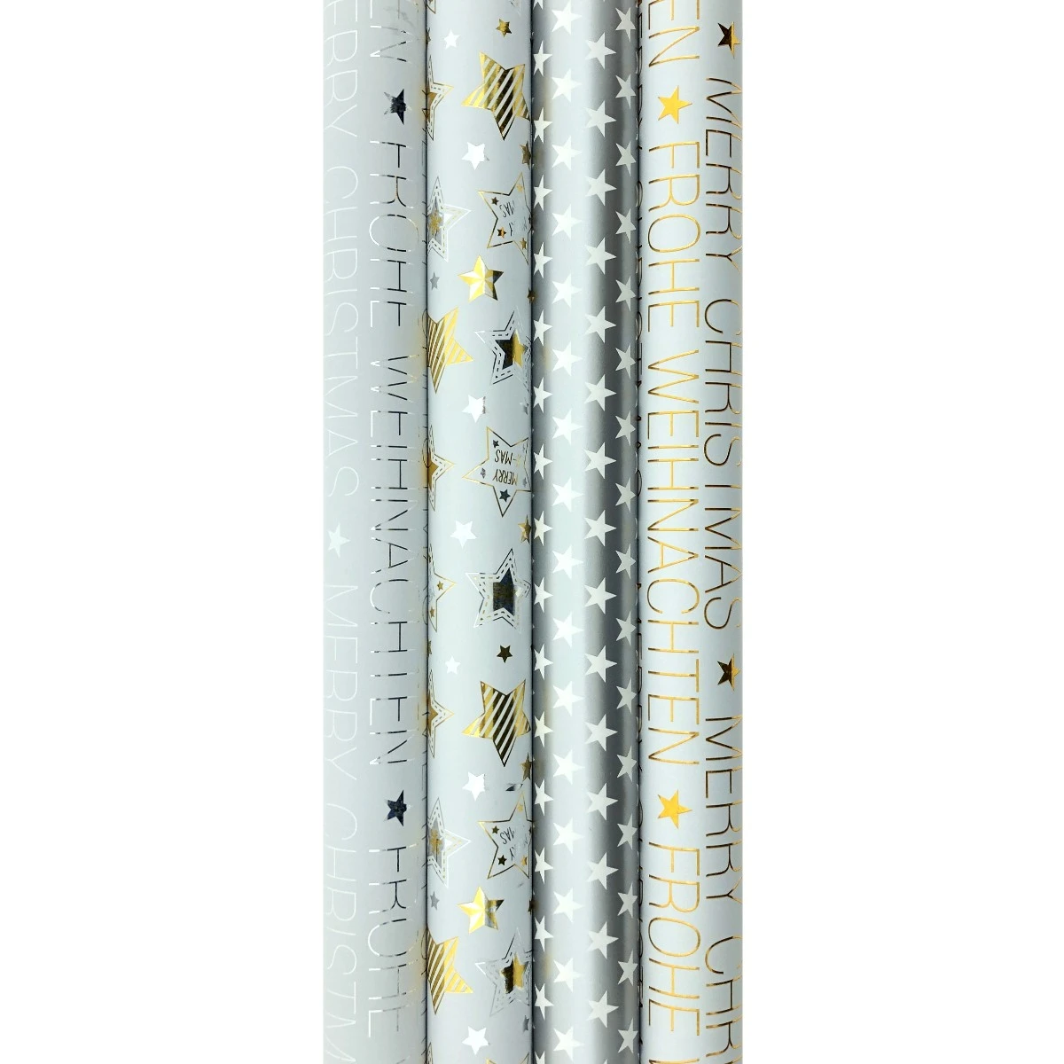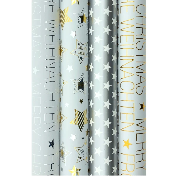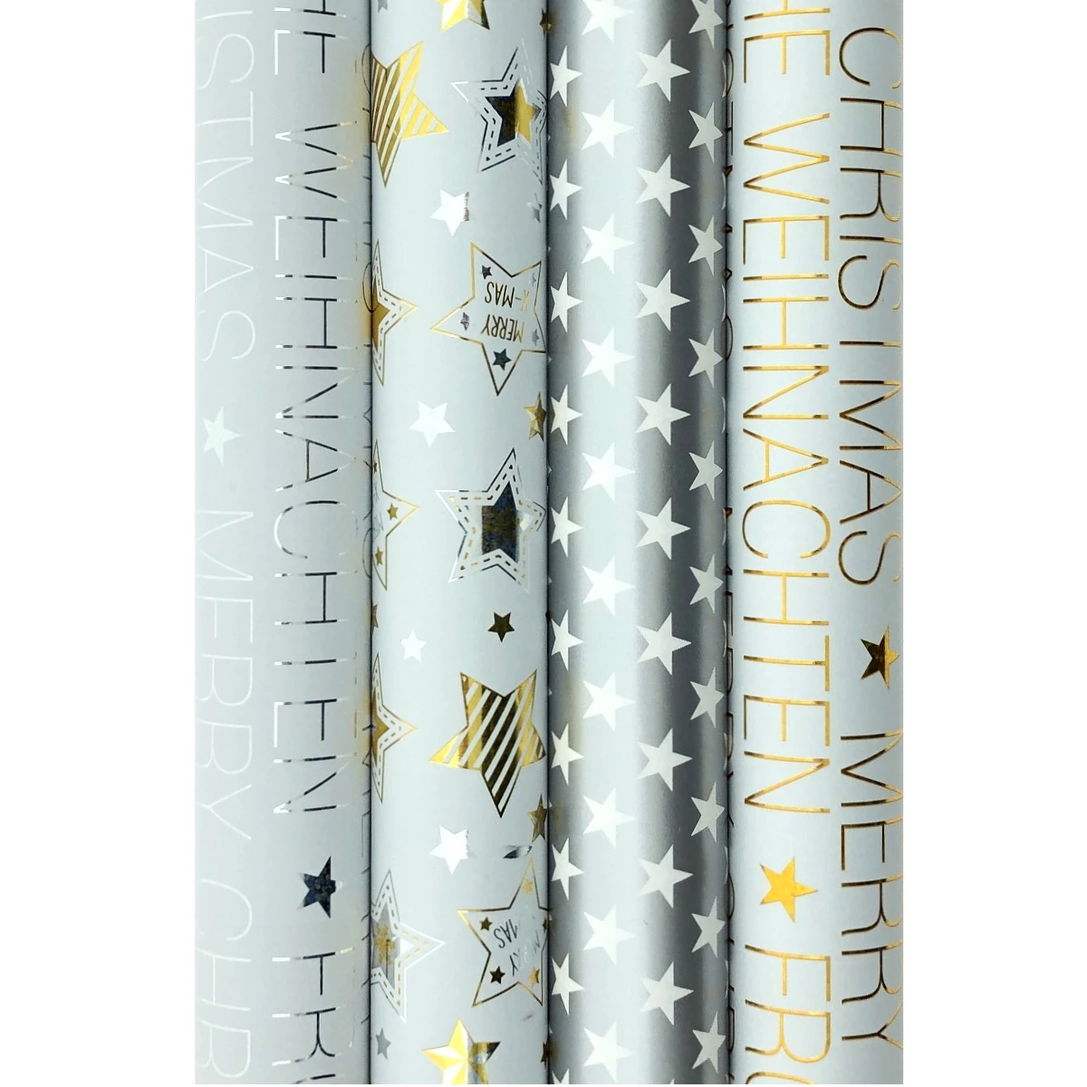 GOLD and SILVER cadeaupapier – Kerstpapier inpakpapier voor Kerst – 3 meter x 70 cm – 4 rollen