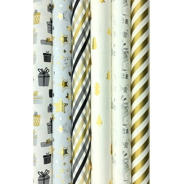 Maak je cadeaus extra feestelijk met ons nieuwe GOLD and SILVER collection cadeaupapier! Speciaal ontworpen voor Kerst, dit inpakpapier voegt een vleugje glamour toe aan je geschenken.