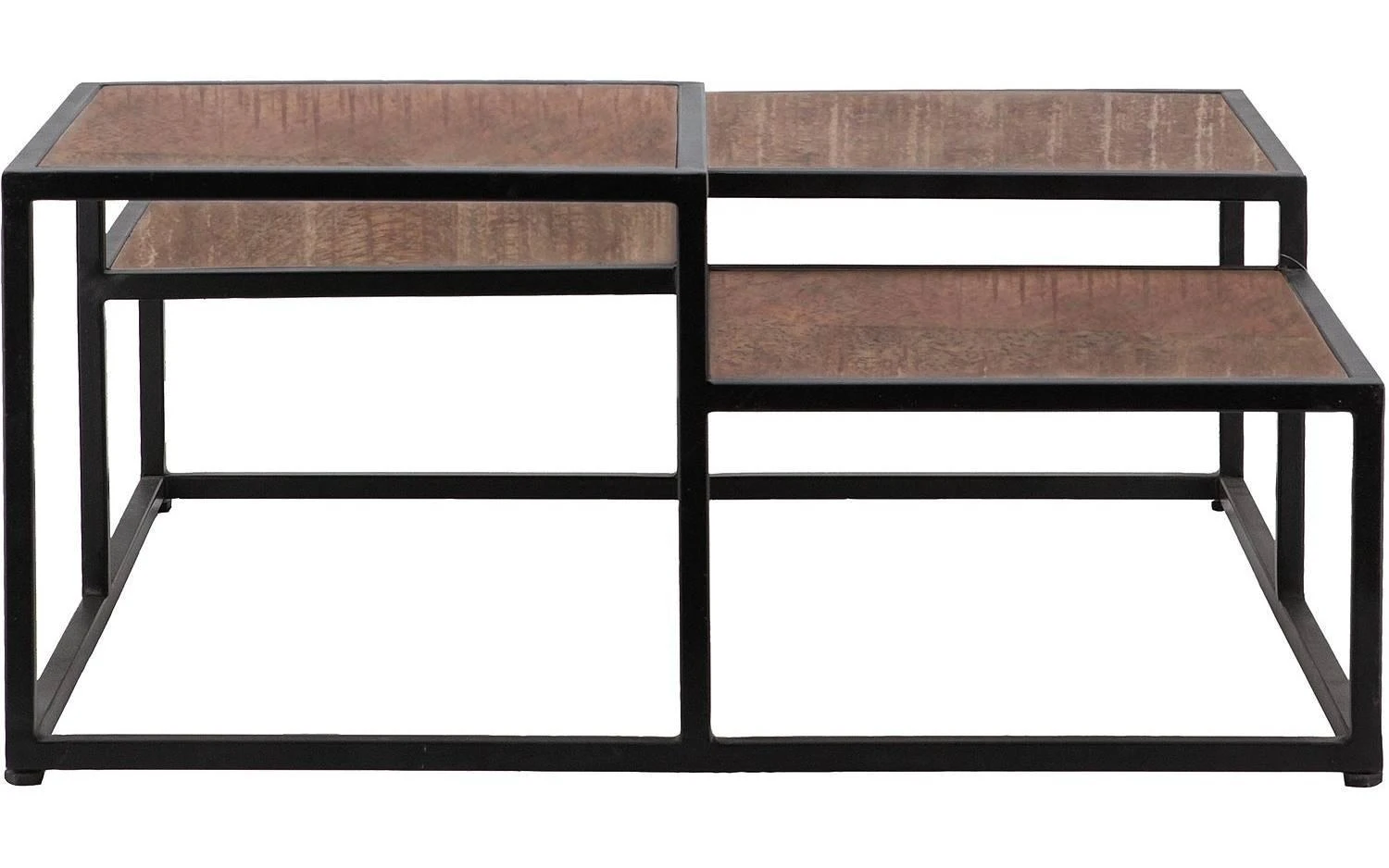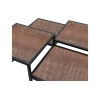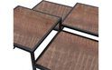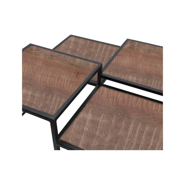 Ben jij op zoek naar een speelse salontafel? Dan is deze industriële bijzettafel iets voor jou. Deze vierkante salontafel bestaat uit vier verschillende bladen met ieder zijn eigen hoogte. Dit zorgt voor een ruimtelijk interieur. Door het zwart metalen frame krijgt de tafel een stoere look. De vier verschillende bladen zorgen ervoor dat ieder blad zijn eigen decoratie kan bevatten.