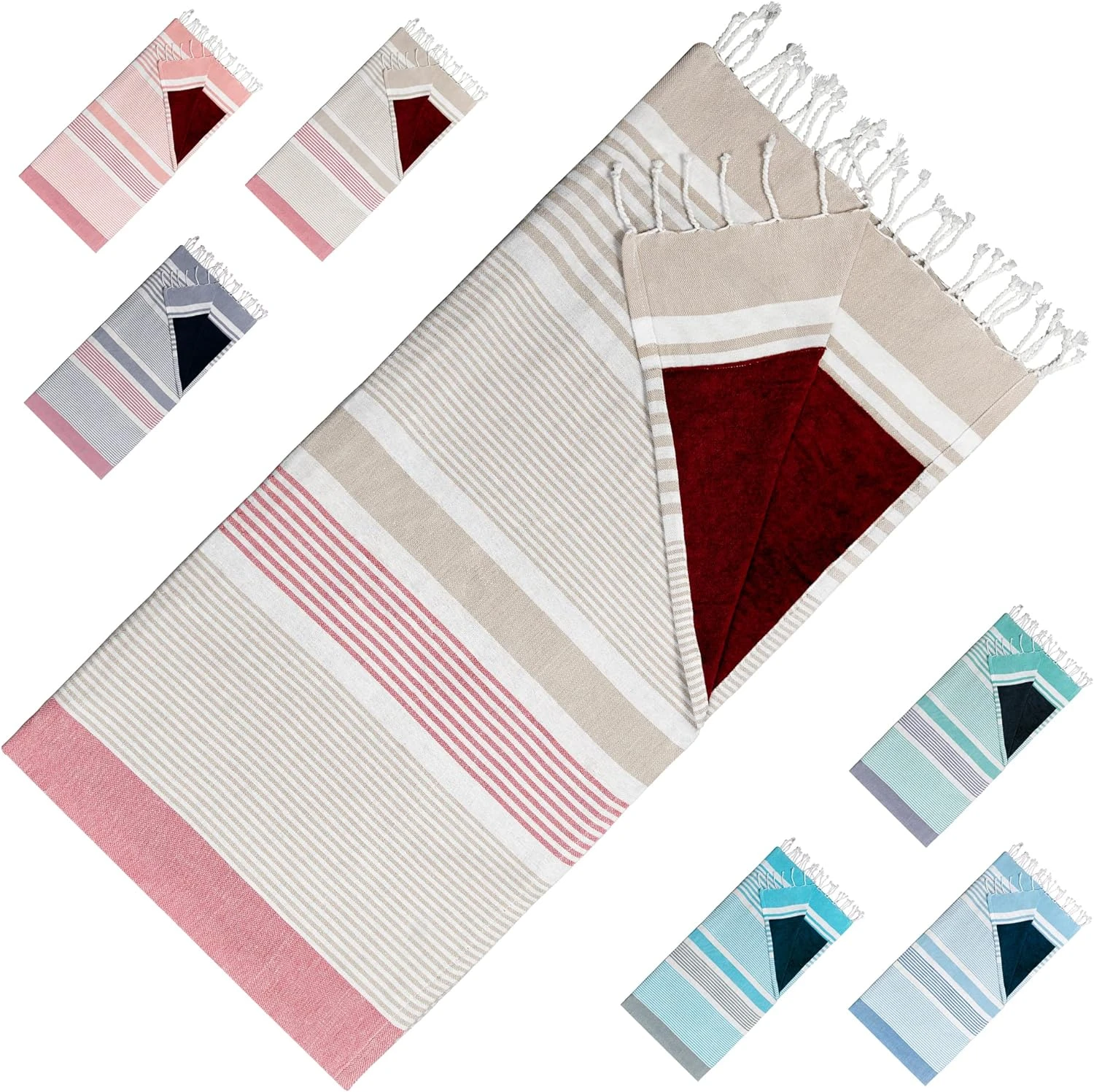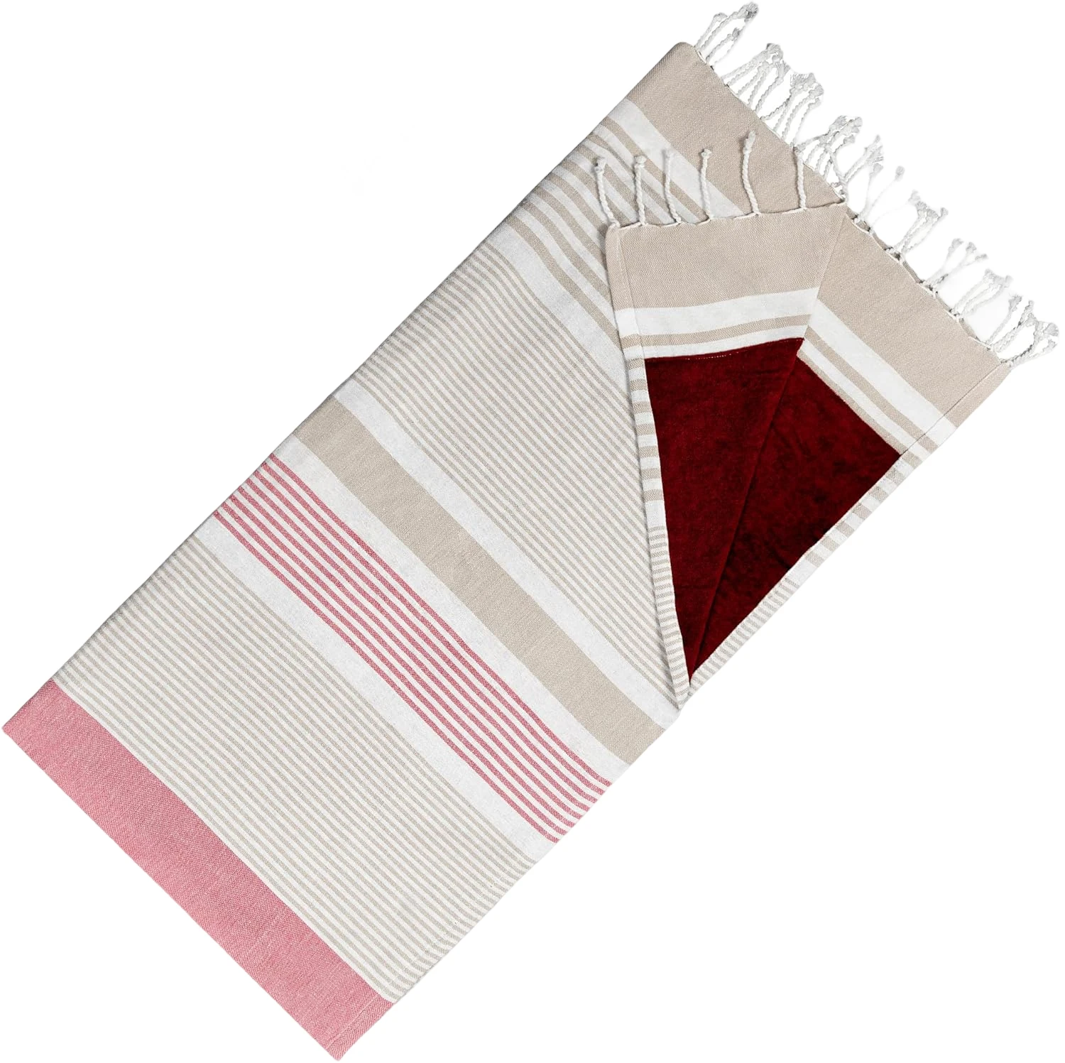 Hamamdoek Dubbelzijdige Kikoydoek & Badstof – Trendy Hammamdoek – 100% Katoen – 95 x 175 cm – Beige-burgundy