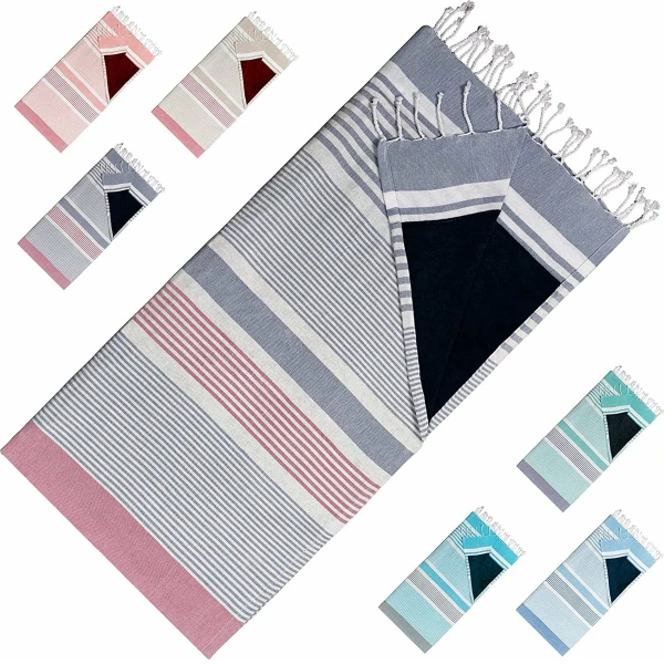 Slim ontwerp: deze hamamdoek heeft 2 lagen: 1 mooie en stijlvolle katoenen Kikoy buitenlaag en 1 badstof binnenlaag om water beter van het lichaam te drogen
