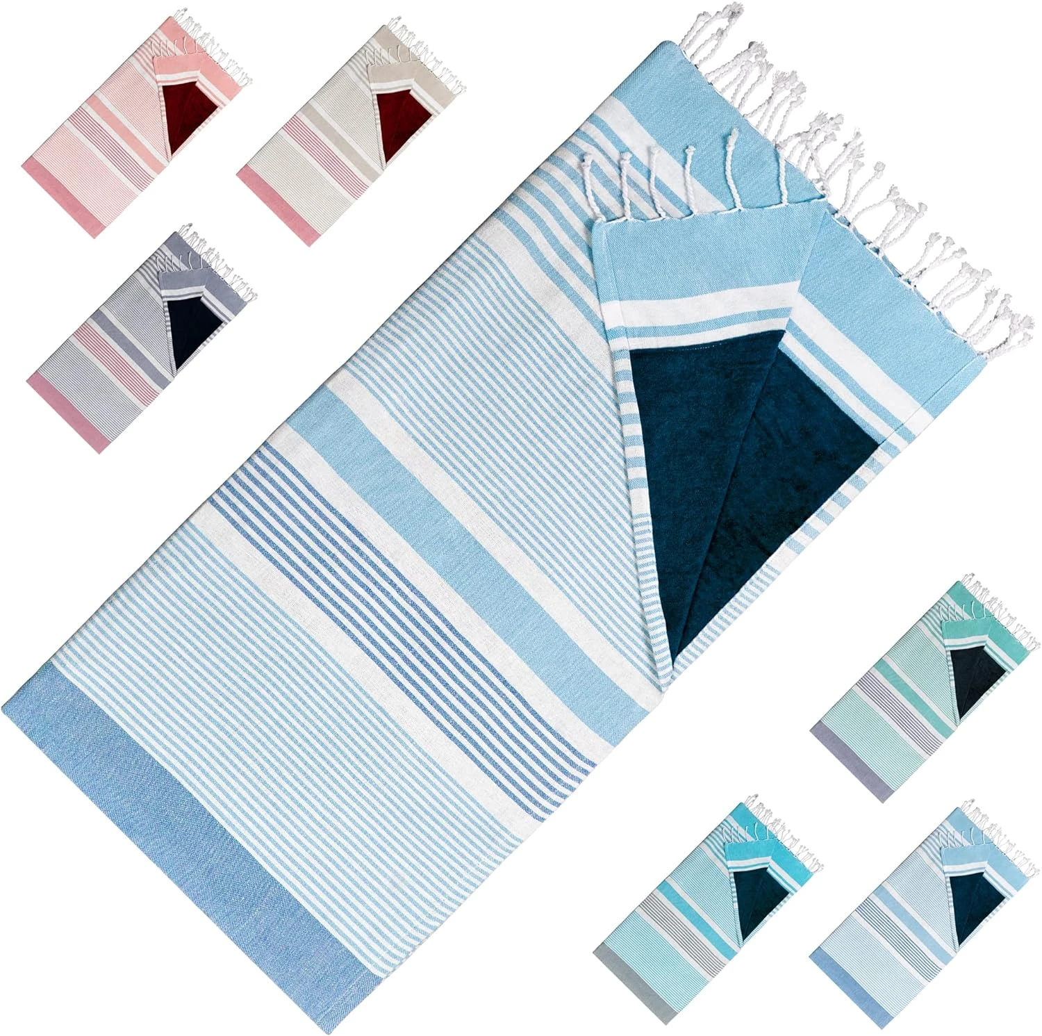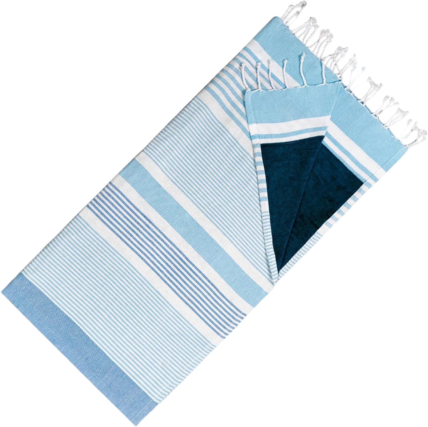 Hamamdoek Dubbelzijdige Kikoydoek & Badstof – Trendy Hammamdoek – 100% Katoen – 95 x 175 cm – Hemelsblauw blauw