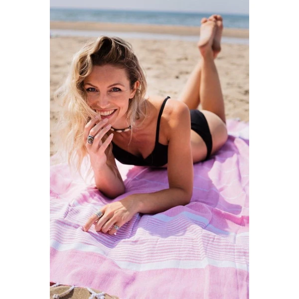 Een Take A Towel hamamdoek is een mooie heerlijke handdoek om te gebruiken op het strand. Deze heerlijke hamamdoek in roze is handgeweven van 100% katoen waardoor de doek er niet alleen prachtig uitziet, maar ook heel fijn aanvoelt. De roze hamamdoek is 180 x 100 cm groot, waardoor je veel ruimte hebt om op te liggen of om deze om te slaan wanneer je een wandeling maakt. Bovendien droogt de hamamdoek snel dankzij de hoge kwaliteit katoen, waardoor deze ideaal is voor een dagje aan het strand of in de sauna. Omdat de hamamdoek is gemaakt van 100% handgeweven katoen, kan je de handdoek ook zeer klein opvouwen, waardoor deze weinig ruimte inneemt in je koffer.