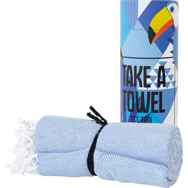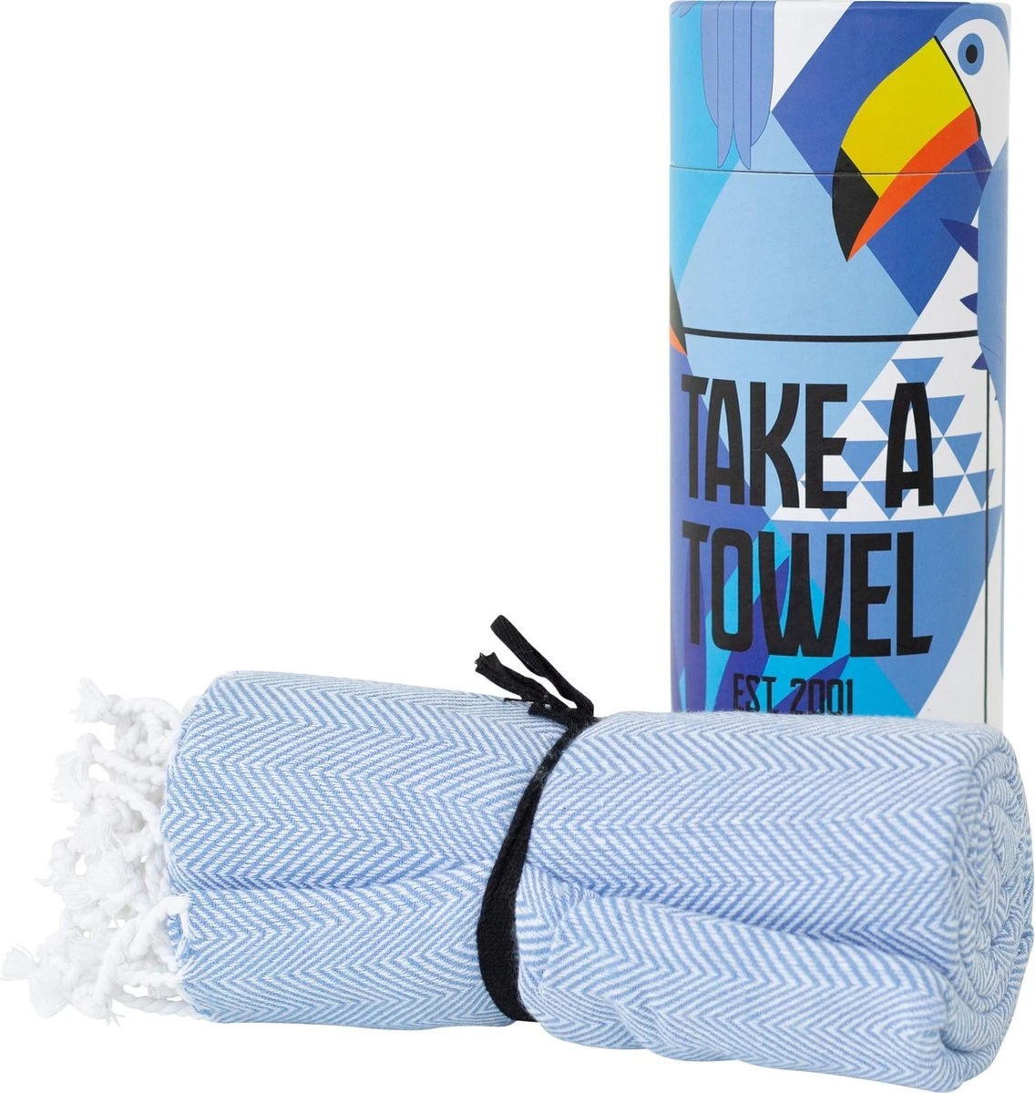 Een Take A Towel hamamdoek is een mooie heerlijke handdoek om te gebruiken op het strand. Deze heerlijke hamamdoek in lichtblauw is handgeweven van 100% katoen waardoor de doek er niet alleen prachtig uitziet, maar ook heel fijn aanvoelt. De lichtblauwe hamamdoek is 180 x 100 cm groot, waardoor je veel ruimte hebt om op te liggen of om deze om te slaan wanneer je een wandeling maakt. Bovendien droogt de hamamdoek snel dankzij de hoge kwaliteit katoen, waardoor deze ideaal is voor een dagje aan het strand of in de sauna. Omdat de hamamdoek is gemaakt van 100% handgeweven katoen, kan je de handdoek ook zeer klein opvouwen, waardoor deze weinig ruimte inneemt in je koffer.