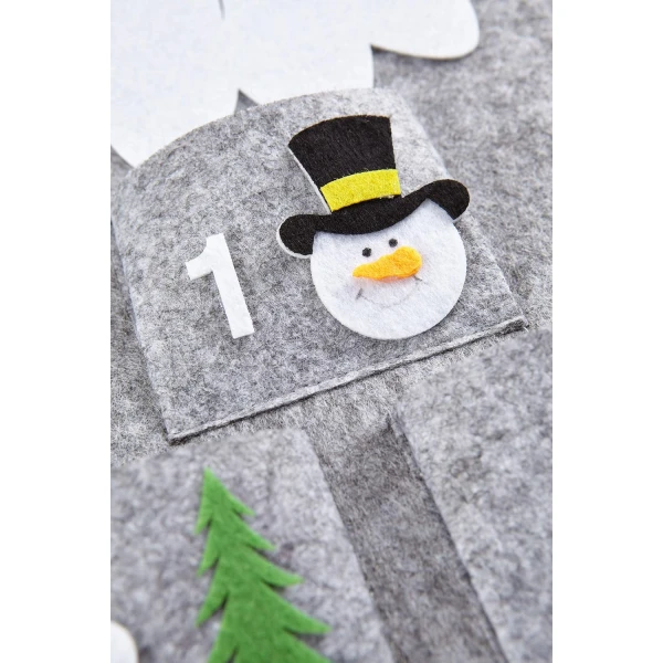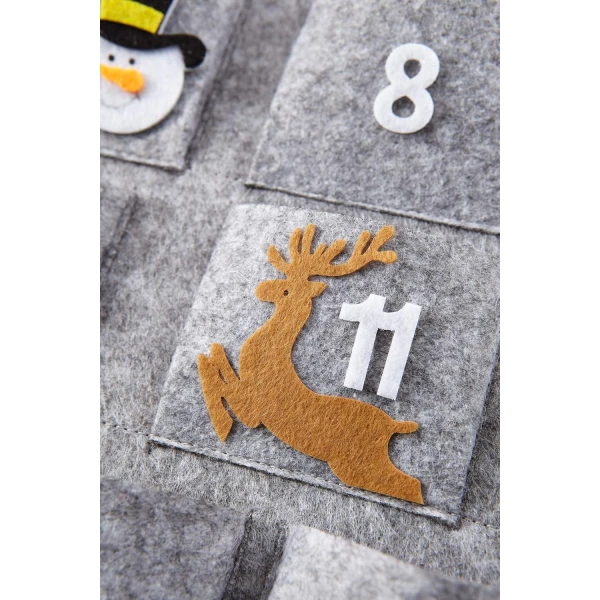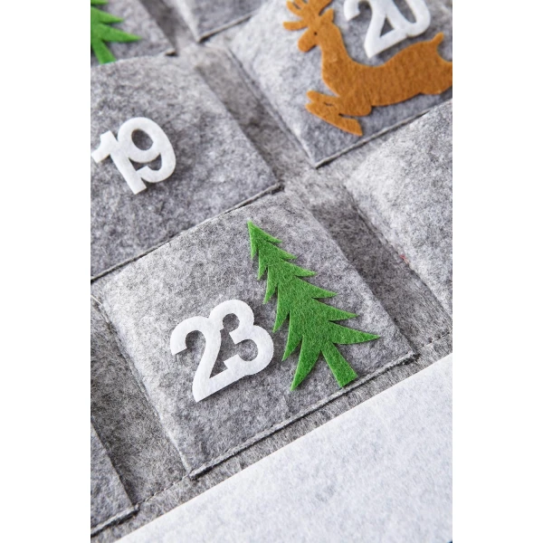 Overal waar dan ook: de adventskalender kun je door een grijze vilten band flexibel en eenvoudig ophangen, bijvoorbeeld aan de muur of deur