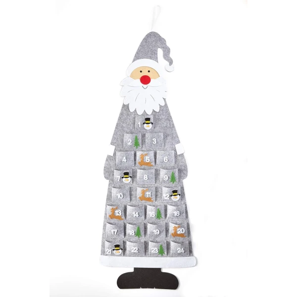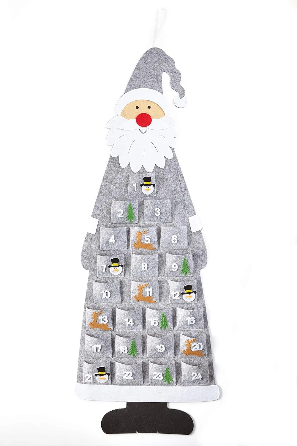HEITMANN DECO Vilten adventskalender Santa – adventskalender om te vullen en op te hangen – Kerstman grijs wit