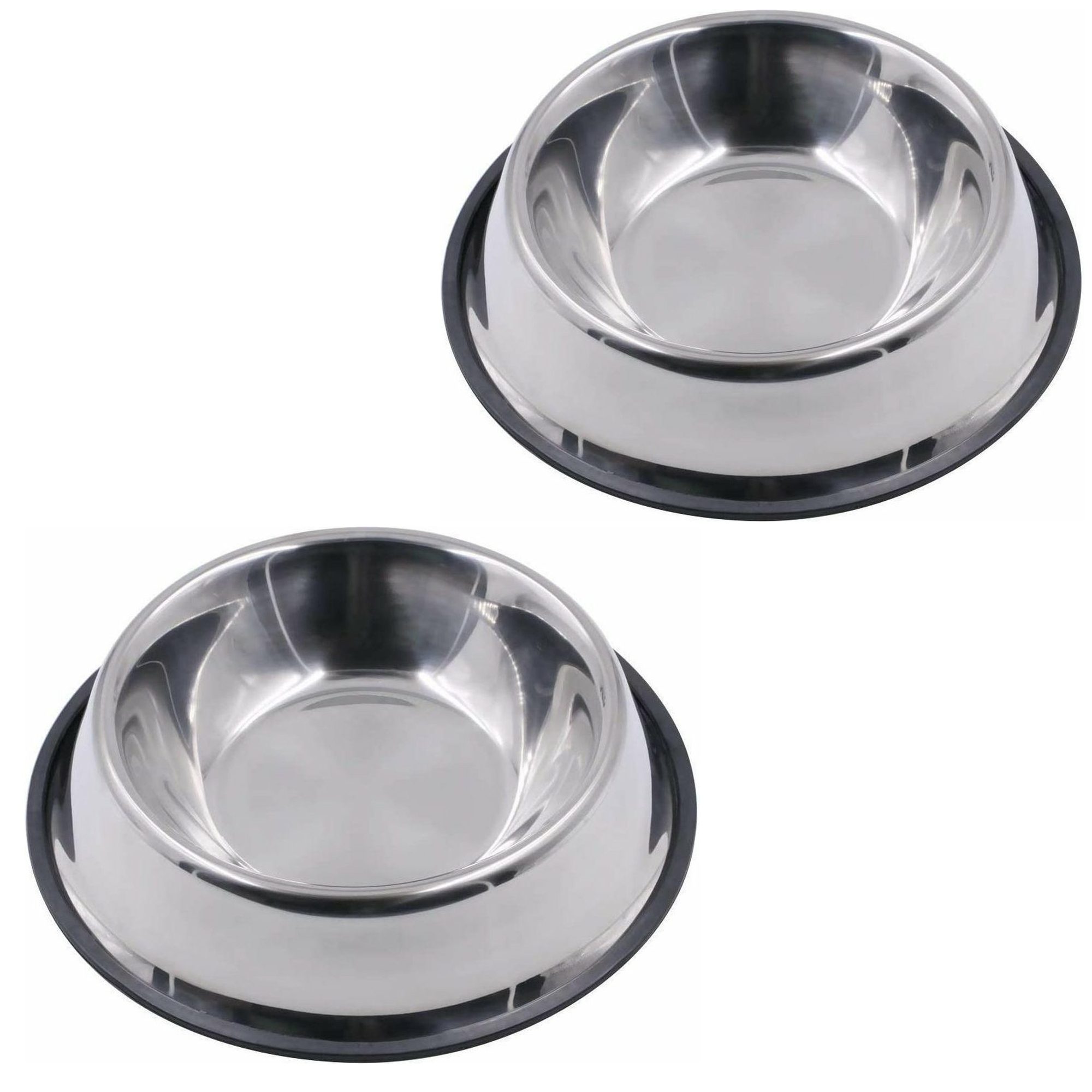 Honden voerbak RVS Hondendrinkbak – 25 cm – slipbestendige rubberen bodem – 2 Stuks