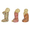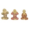 Prachtige set van drie horen zien zwijgen boeddha kindermonniken die ivoor kleurig zijn afgebeeld. Ieder hebben ze een fraai gewaad aan in drie verschillende pastel tinten.