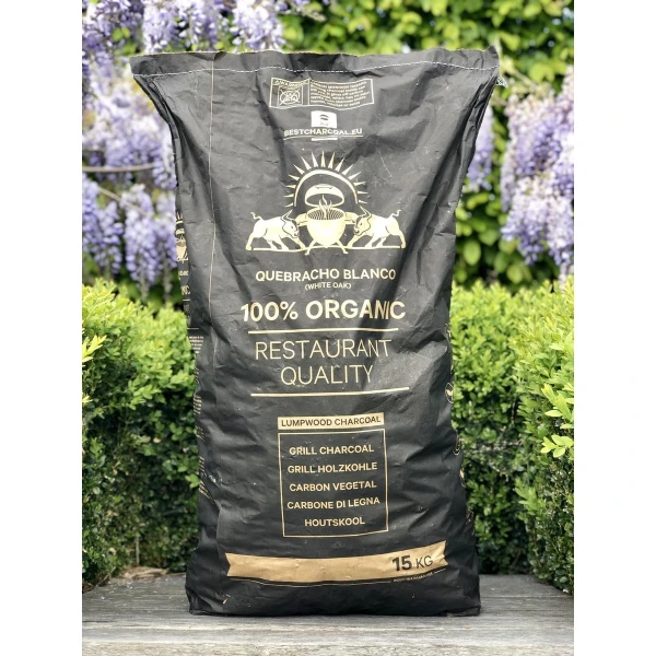 Quebracho Blanco van “Bestcharcoal” Dit is een van de hardste houtsoort van de wereld. De zak bevat 100% Quebracho Blanco (witte eik) en is ideaal voor restaurants, retailers en zelfs thuis BBQ’s. Quebracho Blanco hout, ook wel bekend als “bijlbreker” vanwege zijn extreme dichtheid, is 40% harder dan andere houtskool soorten en geeft daardoor veel langer plezier van uw houtskool dan andere soorten . Geniet urenlang van schoon en rookarm koken. De Quebracho blanco van Bestcharcoal meestal binnen ongeveer 15 minuten klaar om te koken. Vanwege de lange duur, geen vonk, hoog vuur en een zeer laag asgehalte, zult u nooit meer met iets anders willen koken. Ideaal voor gebruik met alle soorten Kamado BBQ’s.