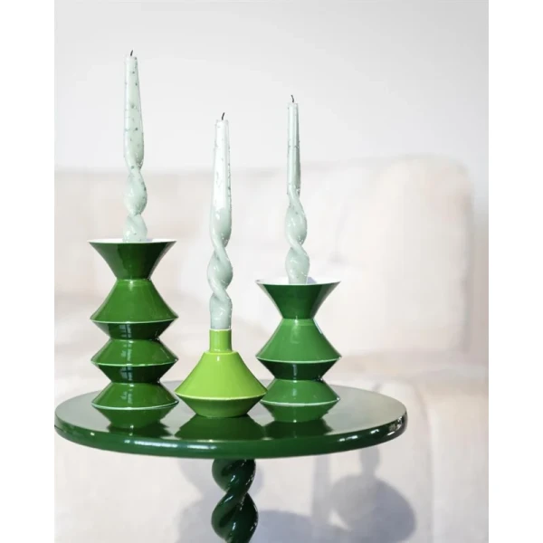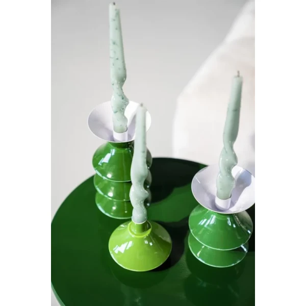 Met deze kaarsenhouder set in de groene kleur geef je een opvallende en speelse touch aan je interieur. Deze stijlvolle kaarsenhouders zijn gemaakt van hoogwaardig materiaal en zijn ontworpen om zowel esthetisch als functioneel te zijn. De levendige lilac kleur brengt een fris accent in de kamer en past goed bij moderne en eigentijdse stijlen. Perfect voor op de eettafel, in de woonkamer of als sfeervol detail in de slaapkamer. Creëer eenvoudig een warme en gezellige sfeer door deze set te combineren met jouw favoriete kaarsen.