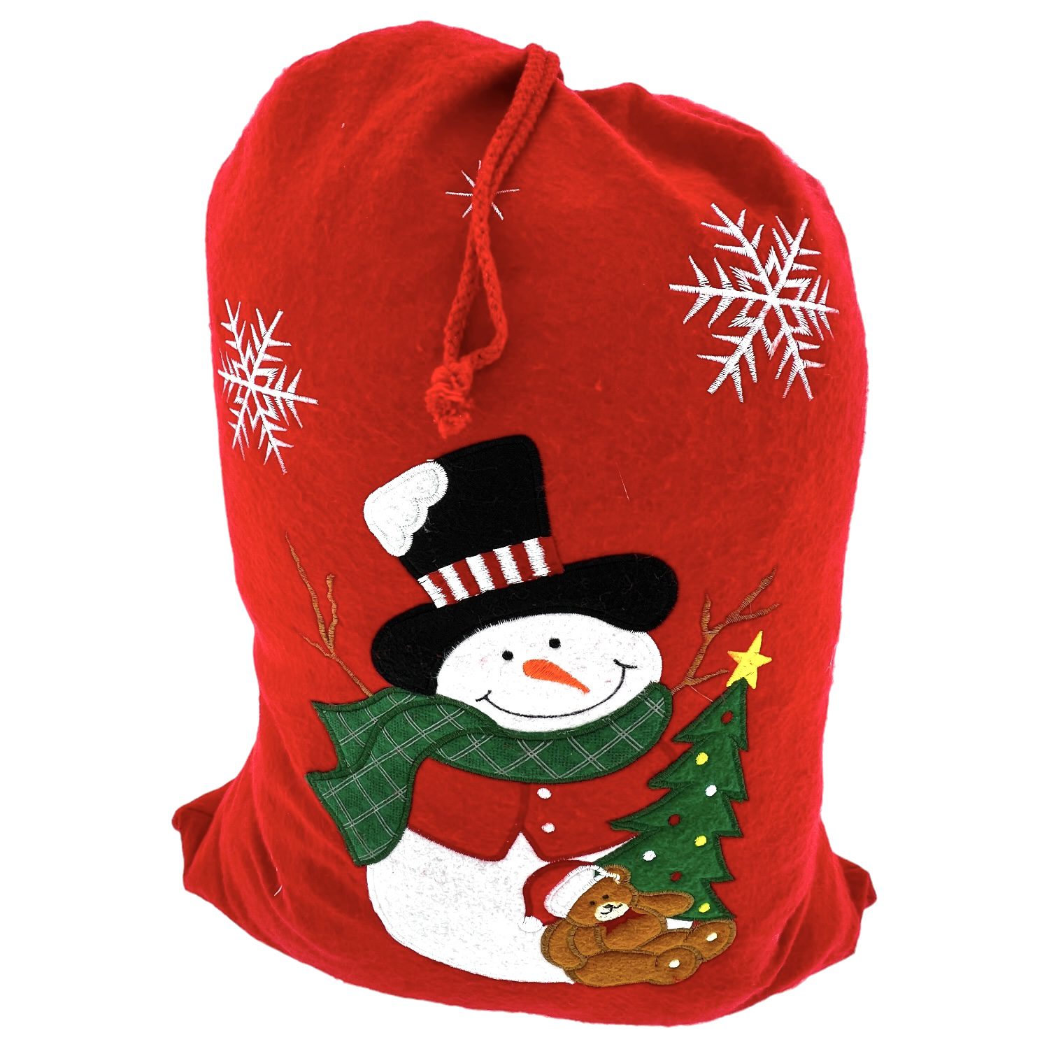 Veilig online shoppen doe je bij ons!Rode Zak van vilt met opdruk van een Sneeuwman.