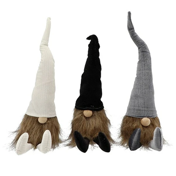 Kerst Gnome Kerst Gnoom corduroy 48 x 18 cm – zwart, wit en grijs – 3 Stuks