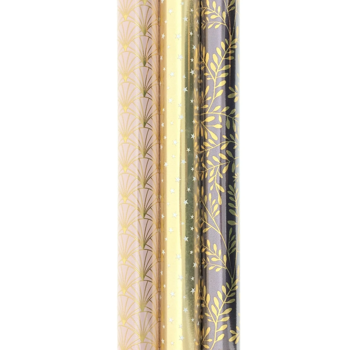 Kerst mix cadeaupapier – Metallic kerstpapier inpakpapier K22 – 10 meter x 70 cm – 3 rollen