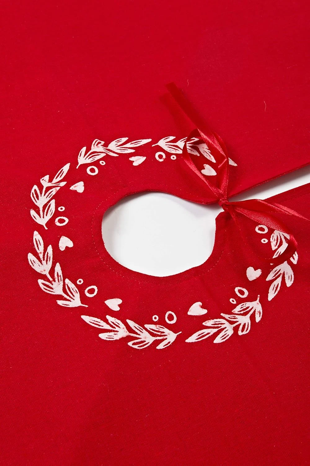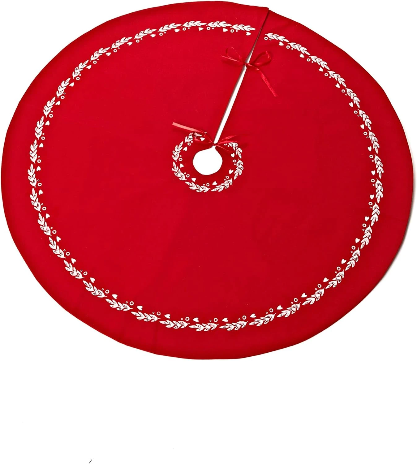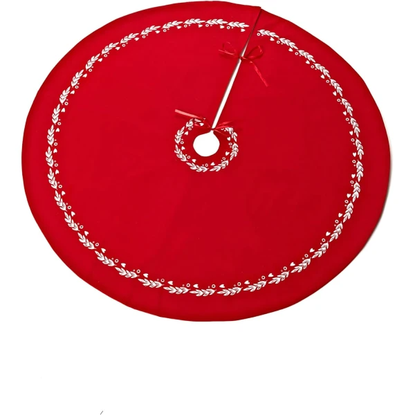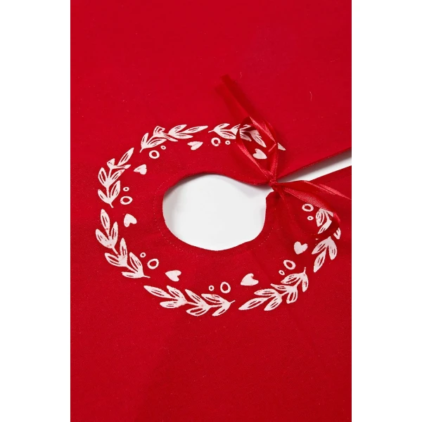 Kerstboomrok / Kerstboomkleed – 105 x 105 cm – Linnen – Rood, Wit