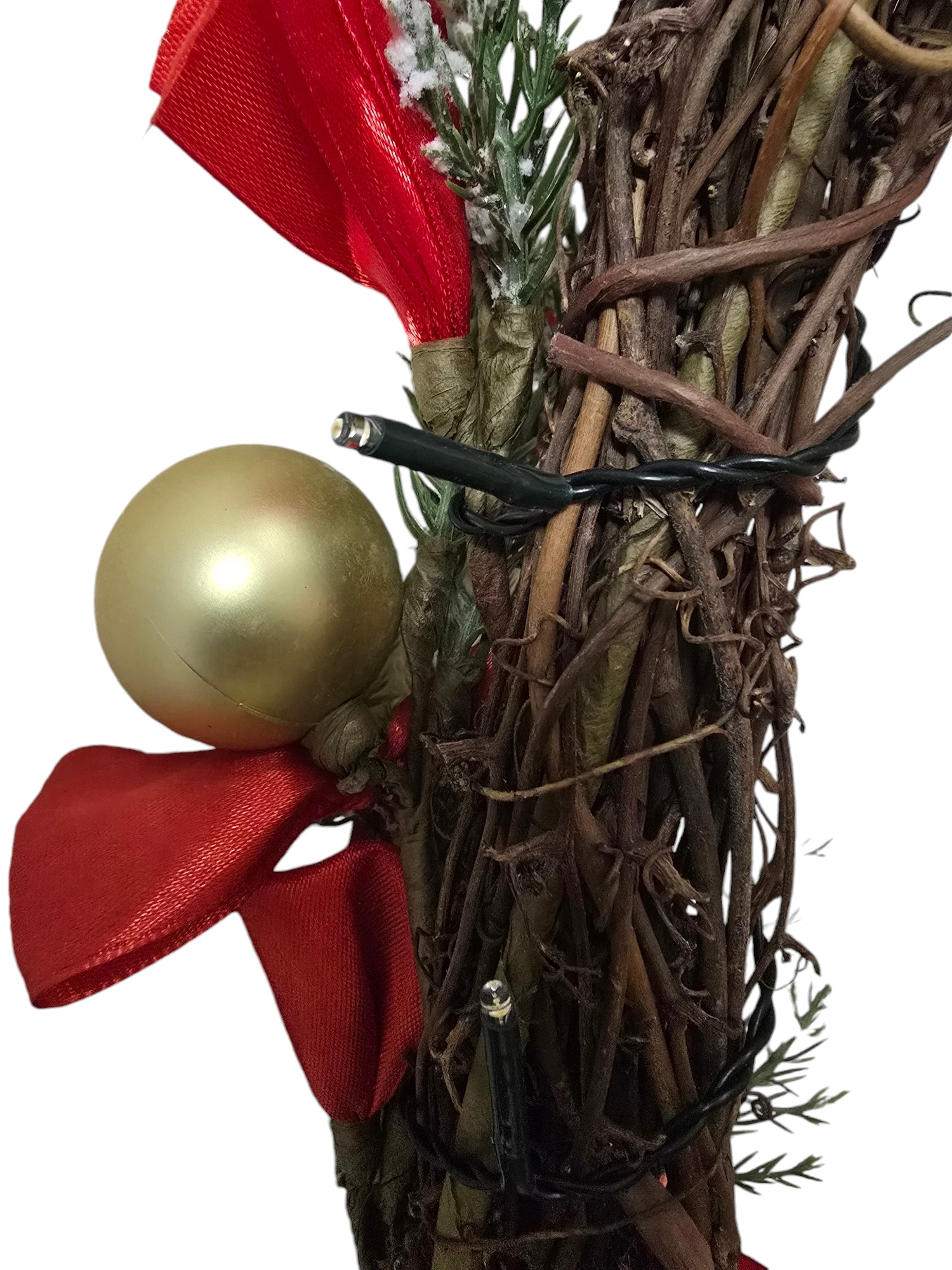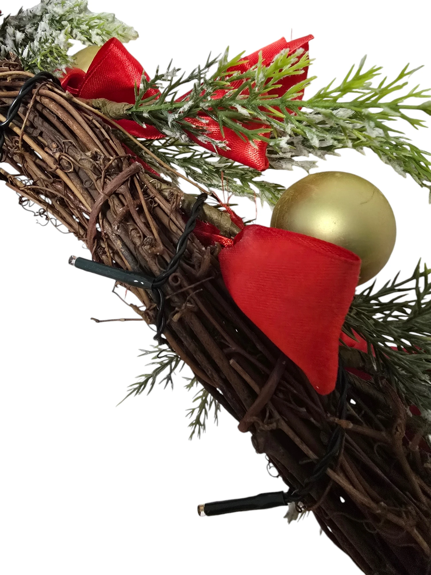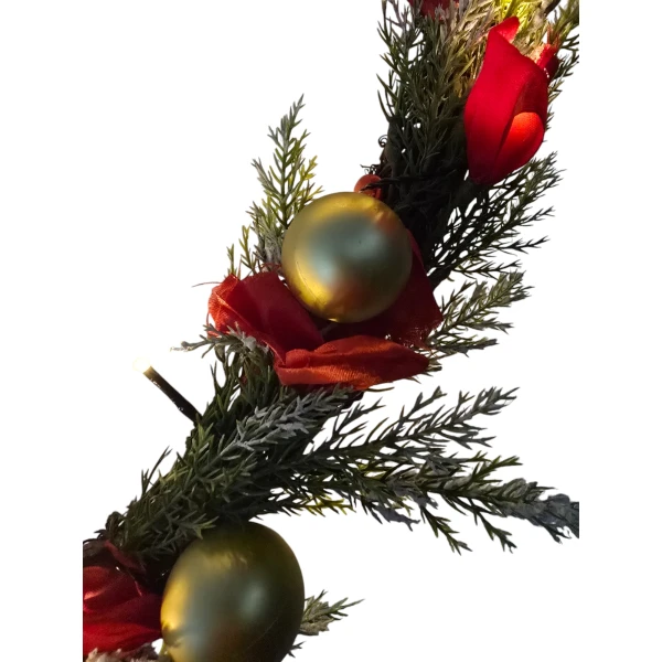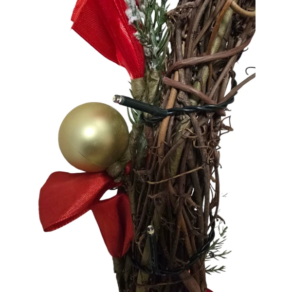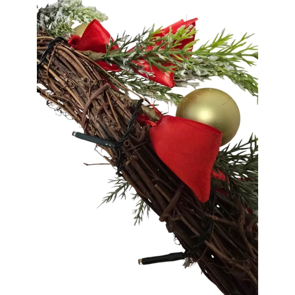 - Rijk gedecoreerd: Een feestelijke mix van kerstballen, bessen, dennenappels en andere seizoensgebonden elementen zoals druivenhouten krans voor een feestelijke uitstraling.