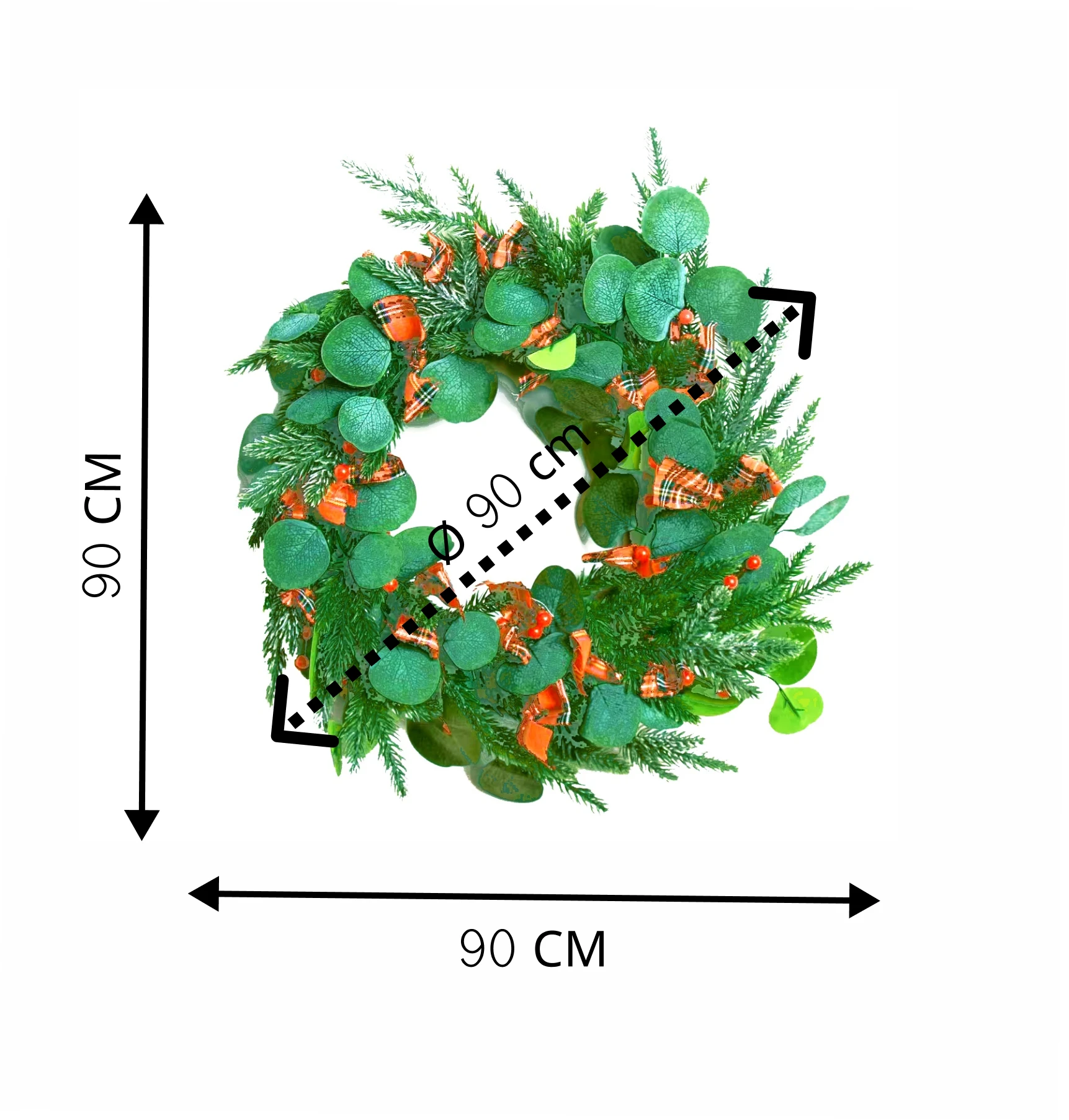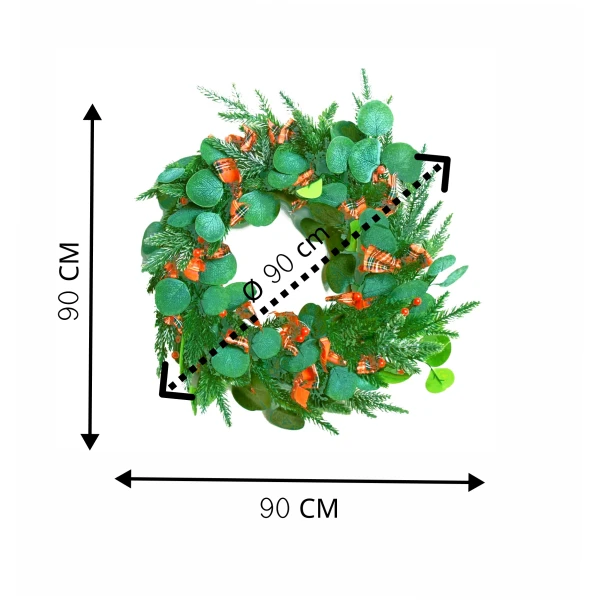 Verschillende formaten: Kies uit een royale krans van 90 cm voor een opvallend statement of een elegante 45 cm variant voor subtiele charme. Perfect voor zowel binnen als buiten.