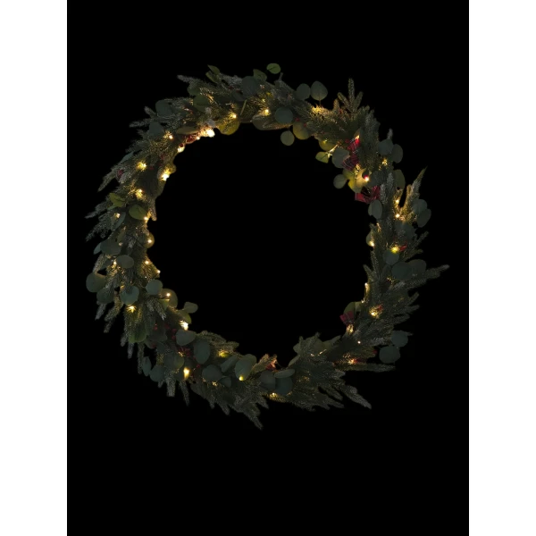 Kerstkrans met warme LED verlichting op batterij – 3 x AA – 80 lampjes – 8 functies en timer van 6 uur – Ø 90 cm