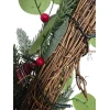- Rijk gedecoreerd: Een feestelijke mix van kerstballen, bessen, dennenappels en andere seizoensgebonden elementen zoals druivenhouten krans voor een feestelijke uitstraling.