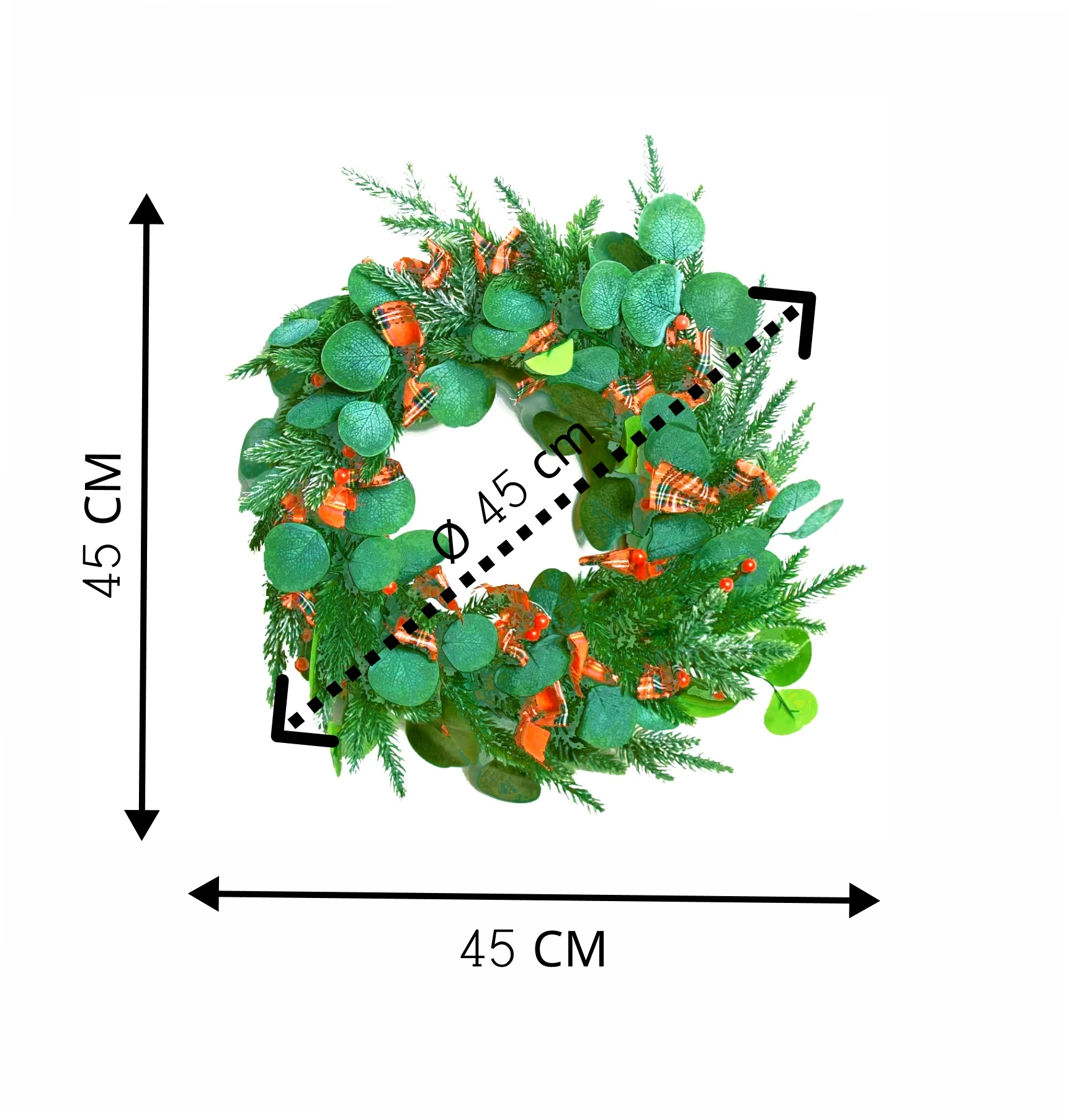 - Verschillende formaten: Kies uit een royale krans van 90 cm voor een opvallend statement of een elegante 45 cm variant voor subtiele charme. Perfect voor zowel binnen als buiten.