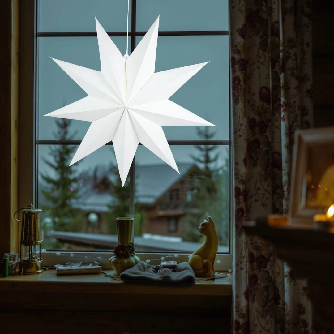 Creëer een feestelijke sfeer met deze witte kartonnen kersster van 60 cm. Hang hem op aan je muur, raam of deur en voeg direct een vleugje kerstmagie toe aan elke ruimte. Bestel nu en laat je huis stralen tijdens de feestdagen!