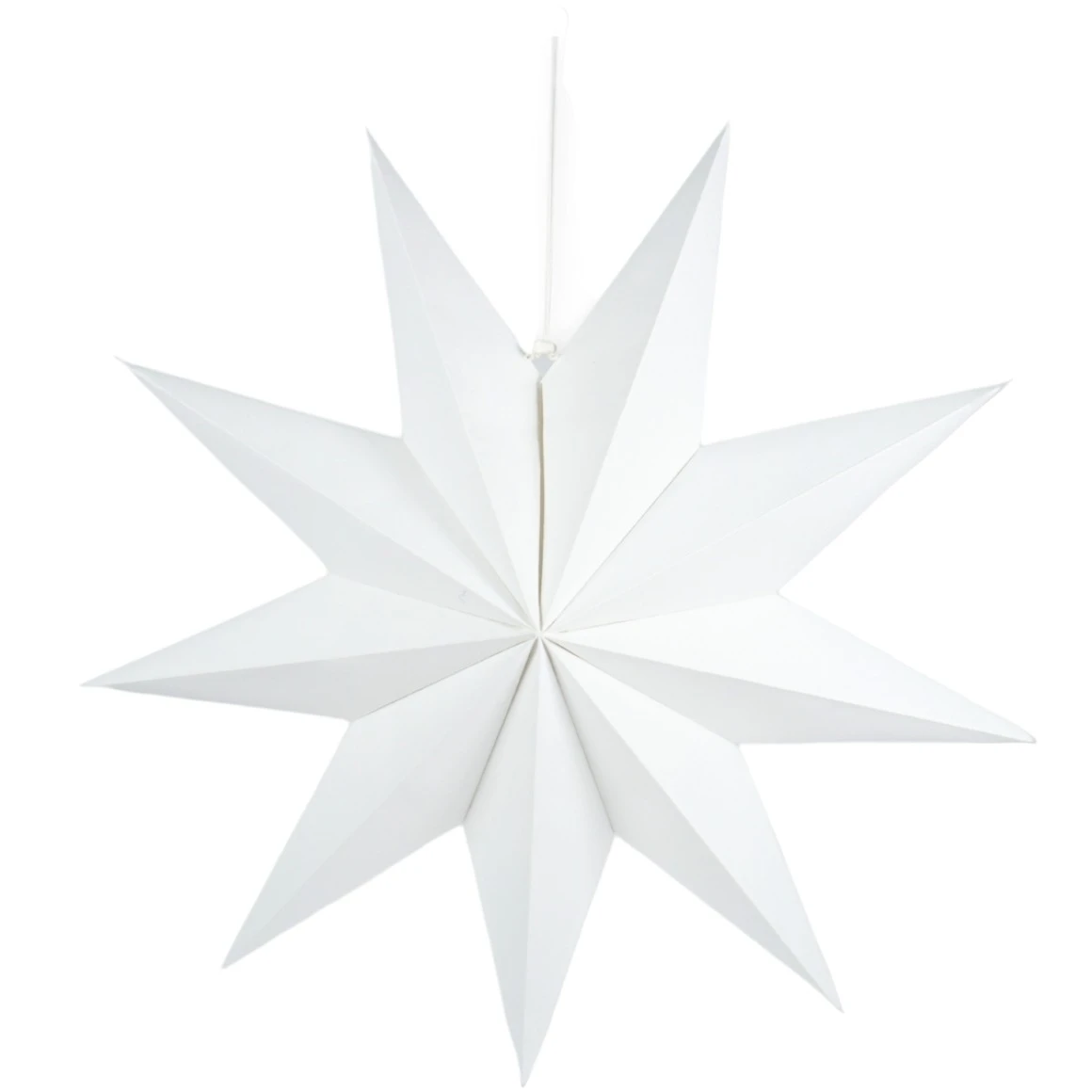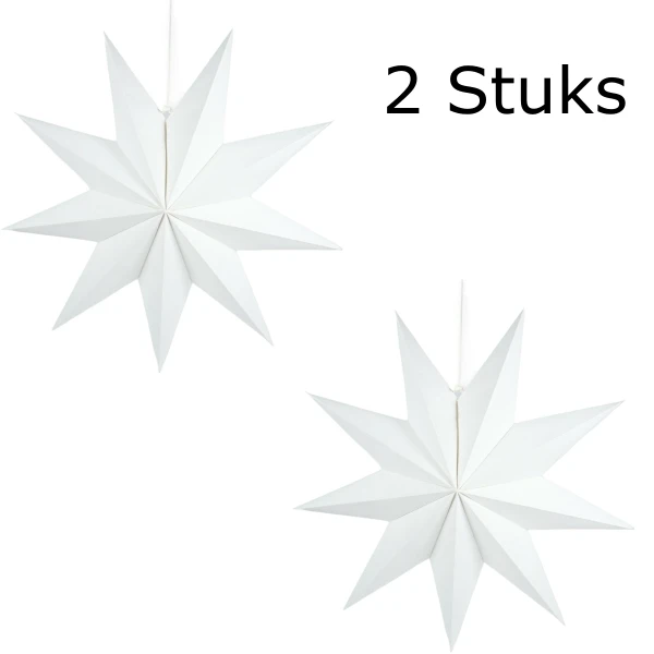 Kerstster Ster Hangend Kerstdecoratie – Effen – Ø 60 cm – Papier – Wit – 2 Stuks