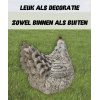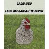De leuke kip met lief kopje kan dus zowel binnen als buitenhuis geplaatst worden.