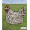 Een werkelijk prachtig kip beeld van een witte kip met zwarte details. Dit kip beeld heeft een hoge vorm van afwerking, tot de veren aan toe.
