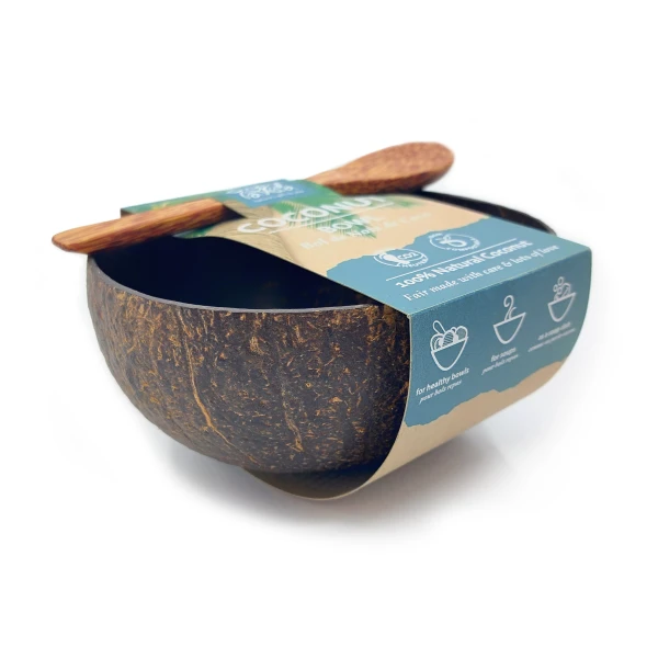 Veilig online shoppen doe je bij ons!Kokoskommen met eetlepel – Set van 2 – zero waste – handgemaakt – duurzaam cadeau