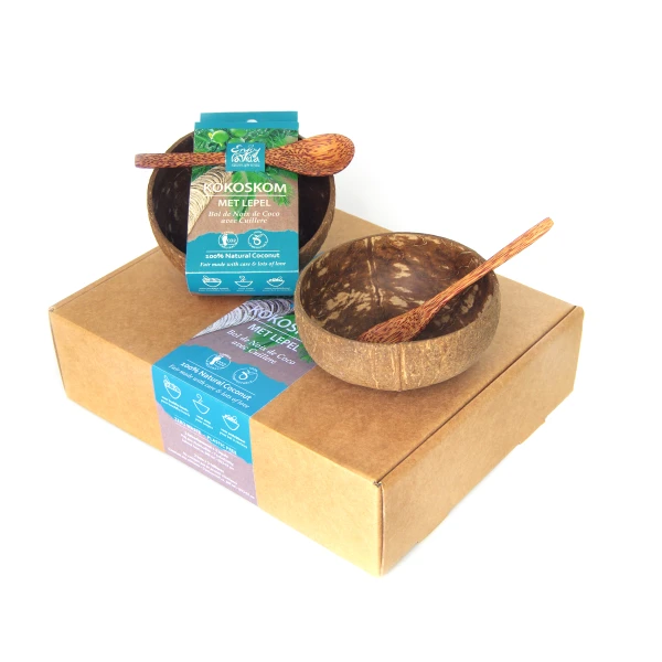 Kokoskommen met eetlepel – Set van 2 – zero waste – handgemaakt – duurzaam cadeau – geschenkdoos – coconut bowl