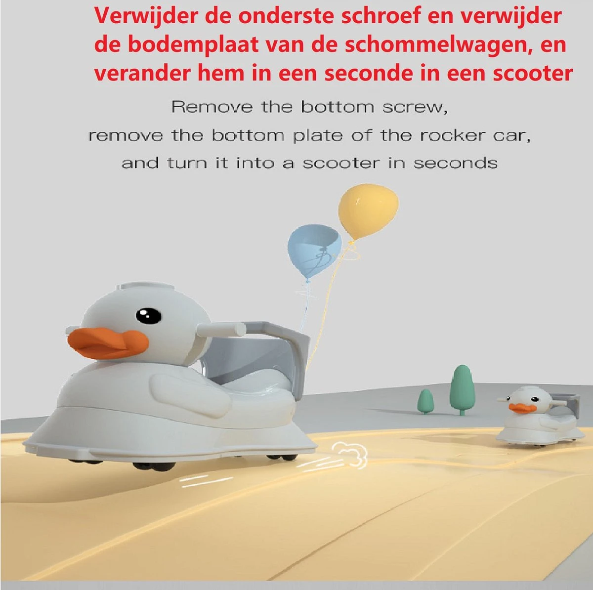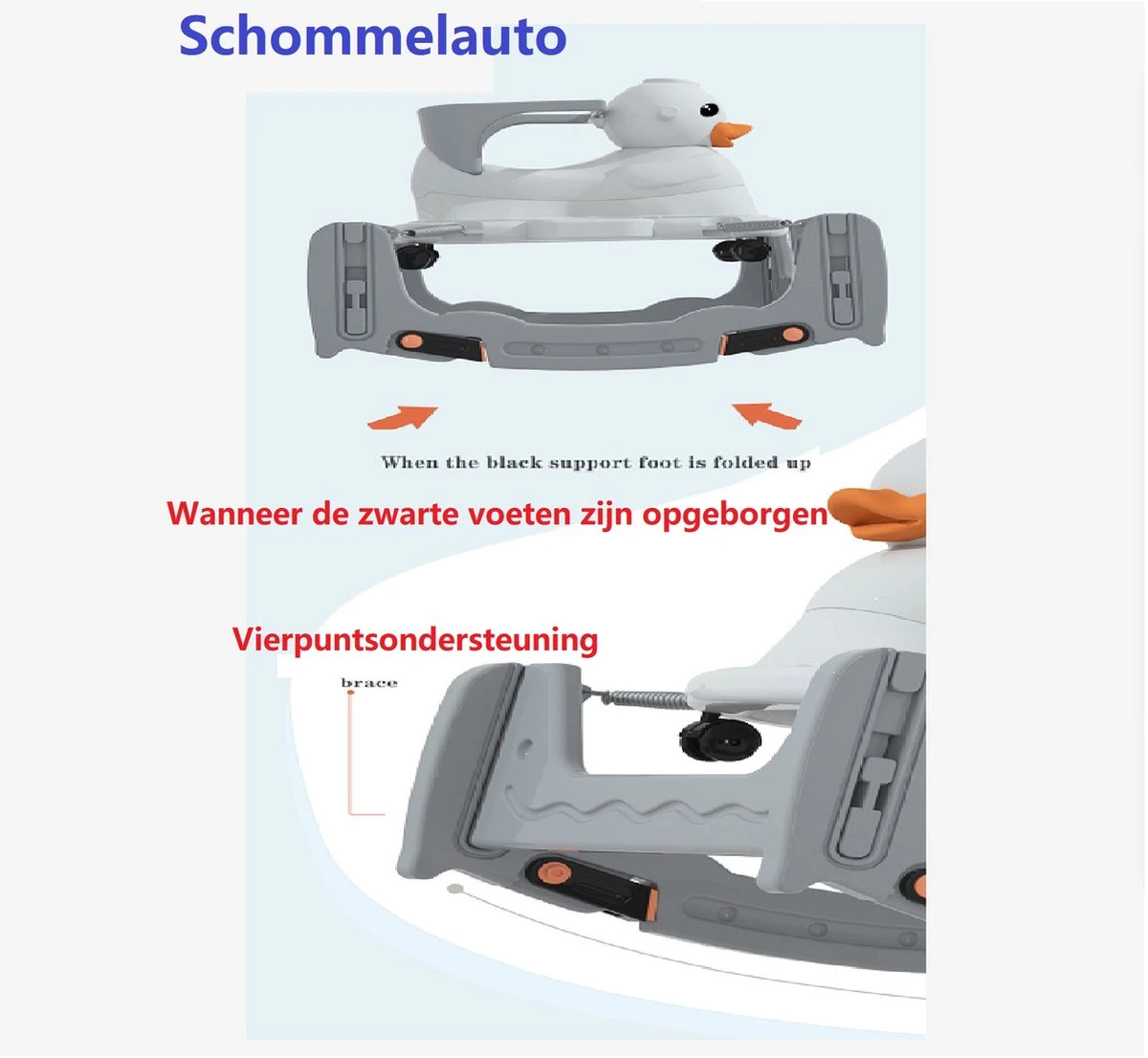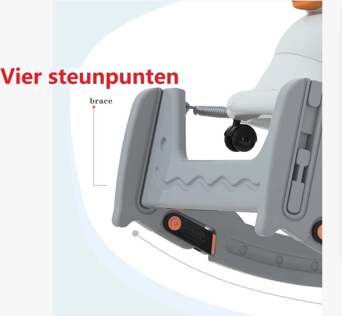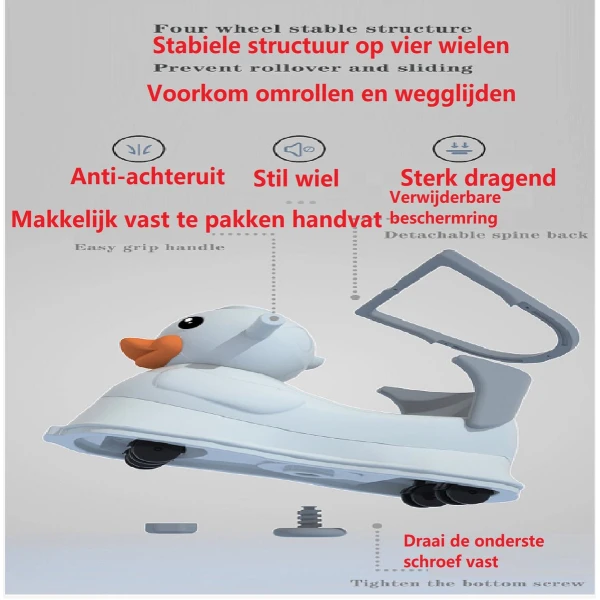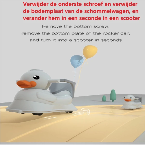 Handige en veilige multifunctionele kinder schommel stoel / loopwagen. De multifunctionele schommelstoel kan worden gebruikt als schommelstoel, als loopstoel, als loopfiets en als schommel auto. De multifunctionele kinderstoel is stabiel en voorzien van een anti kantel systeem, waardoor hij veilig is voor uw kind. De schommelstoel is gemaakt van milieuvriendelijke HDPE materialen en bevat geen toxische stoffen en dus geheel veilig. De schommelwagen is zodanig geproduceerd dat het geheel glad is en geen scherpe randen heeft. De verschillende functies dragen bij aan verschillende vormen van ontwikkeling van uw kind, zo verbeterd de loopfiets de balans en het evenwichtsgevoel van uw kind.