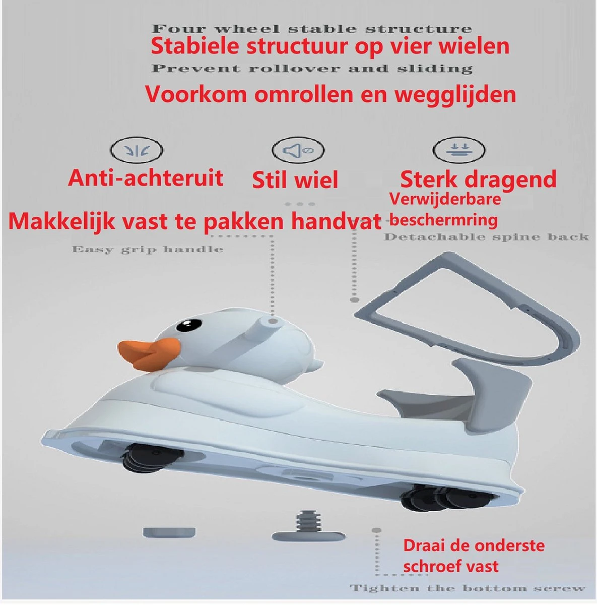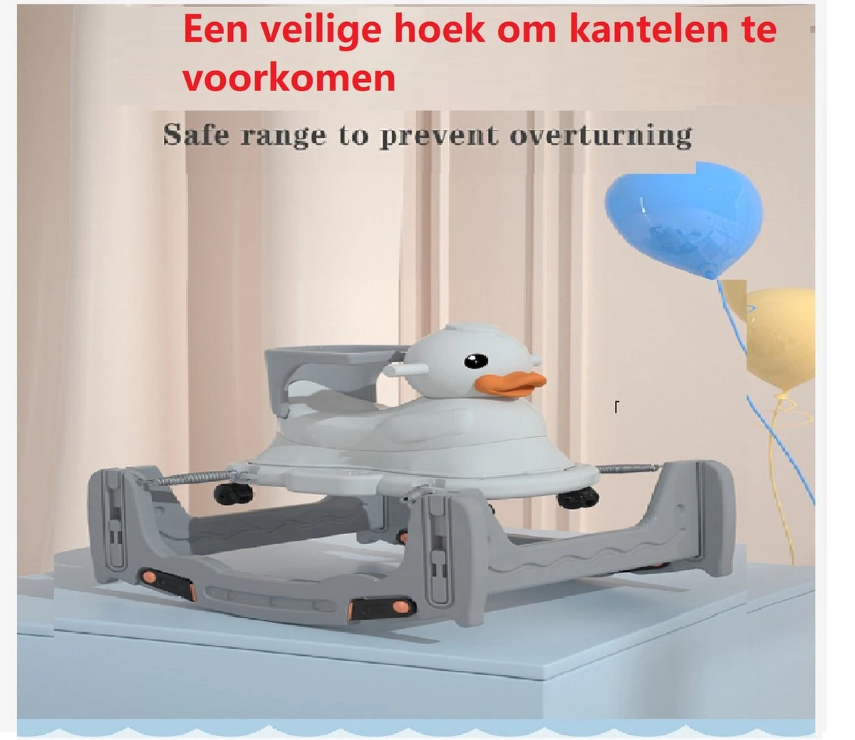 Deze loopstoel is geheel veilig voor uw kind en door de verschillende functies erg handig en goed voor de ontwikkeling van uw kind.