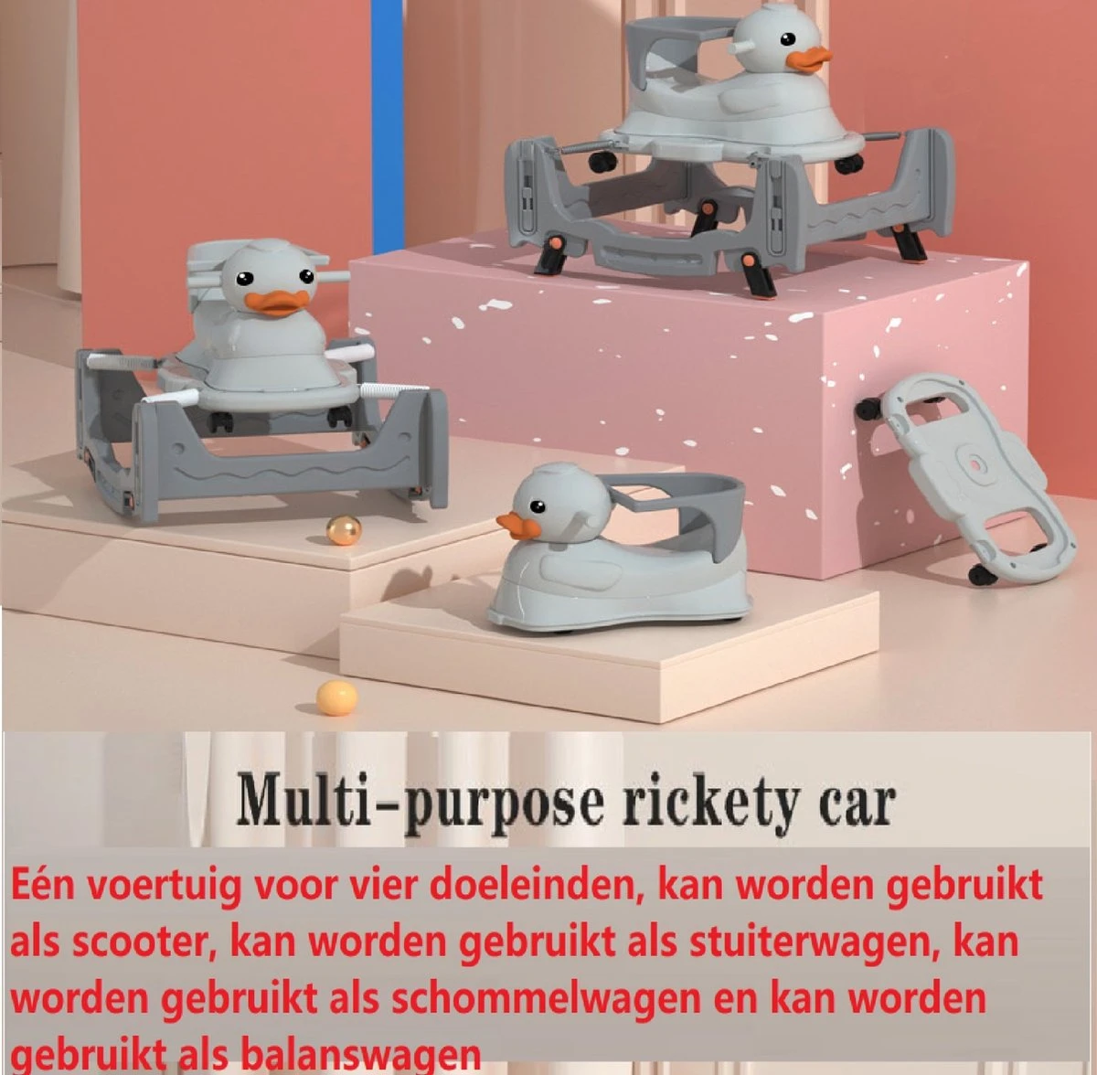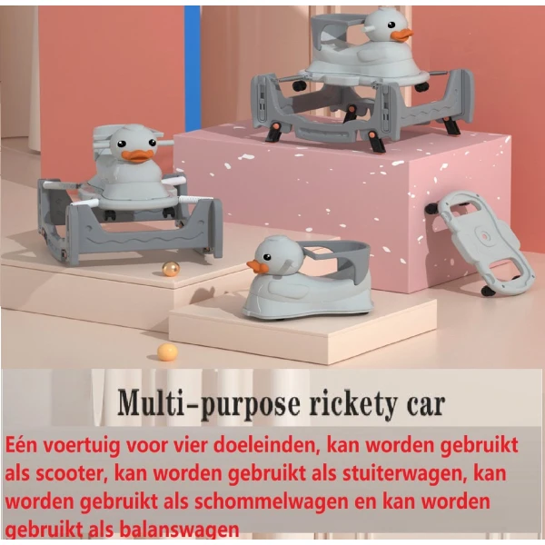 Veilig online shoppen doe je bij ons!Multifunctionele 4 in 1 – schommelwagen – kinderwagen – loopwagen – Loopstoeltje – Baby Loopwagen – Grijs