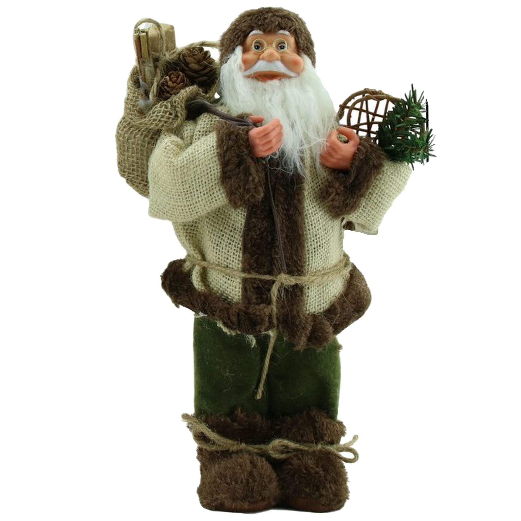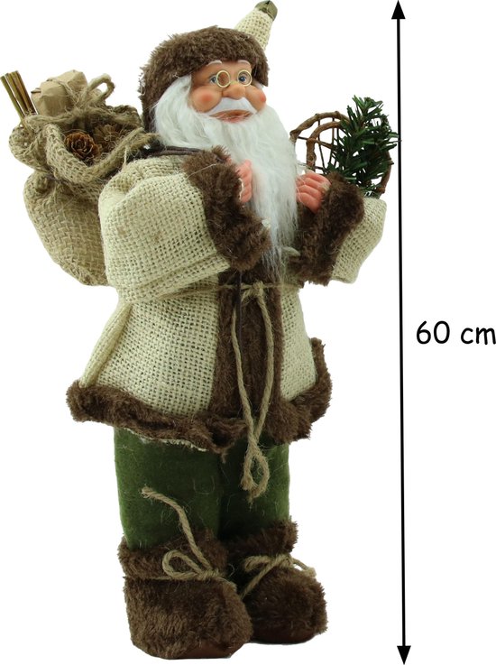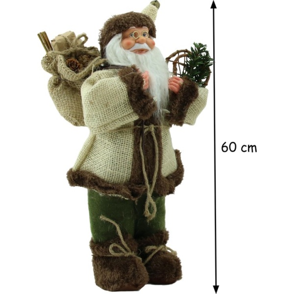 Luxe Afgewerkte Kerst Decoratie Kerstman Staand Creme/Bruin 60cm