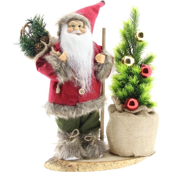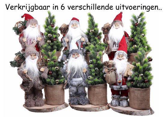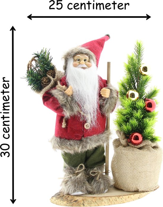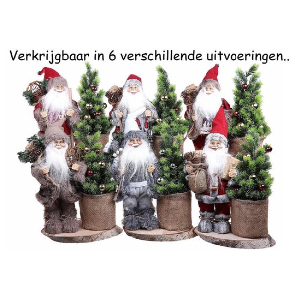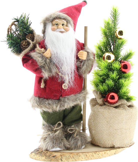 Luxe Afgewerkte Kerst Decoratie Kerstman Staand Naast Kerstboom – Rood-Grijs – 30cm