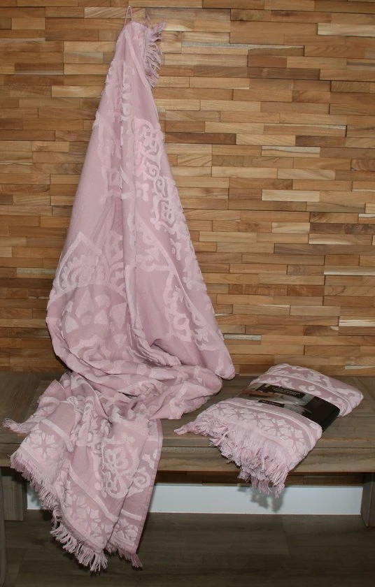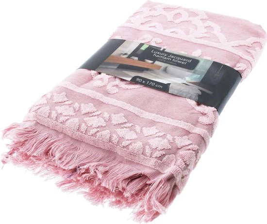 Luxe Jacquard Hamamdoek – Fouta – – Hammamdoek – 100% Katoen – 90 x 170 cm – Oud Roze