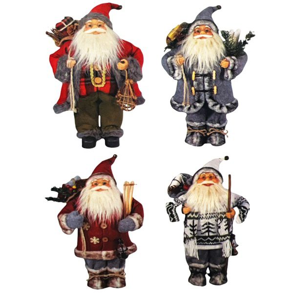 U ontvangt 4 verschillende kerstmannen van 30 centimer hoog..