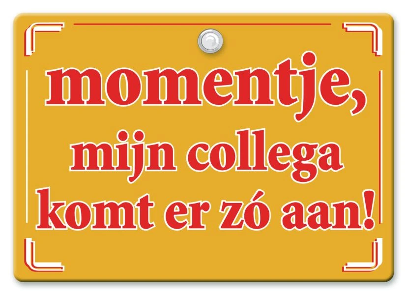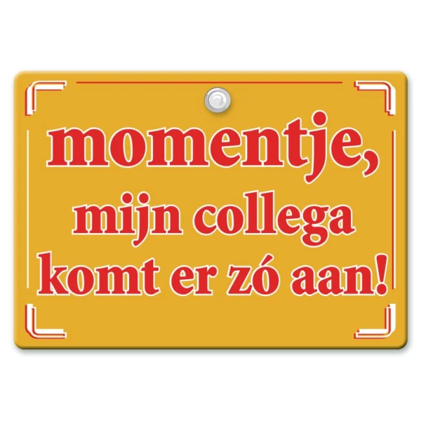 Metal Slogan – Spreukenbord – Tekst Bord – Momentje, mijn collega komt er zo aan!