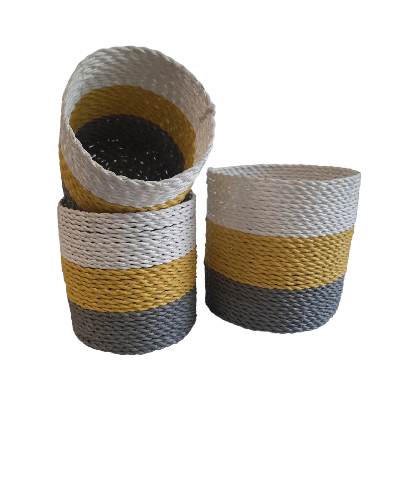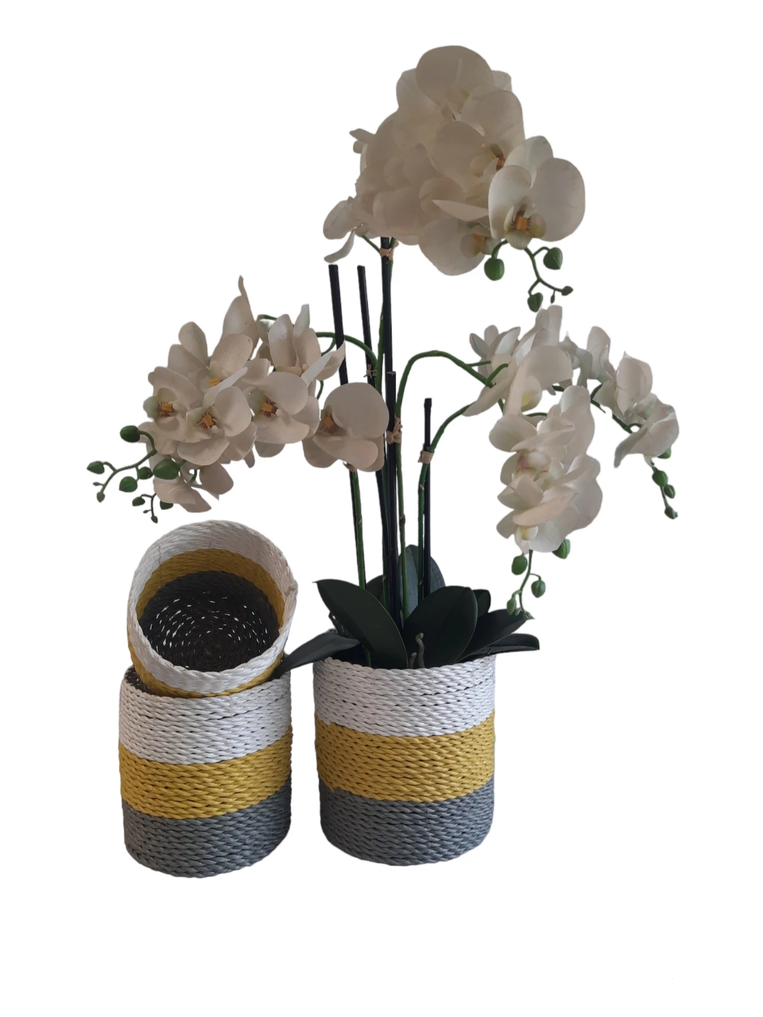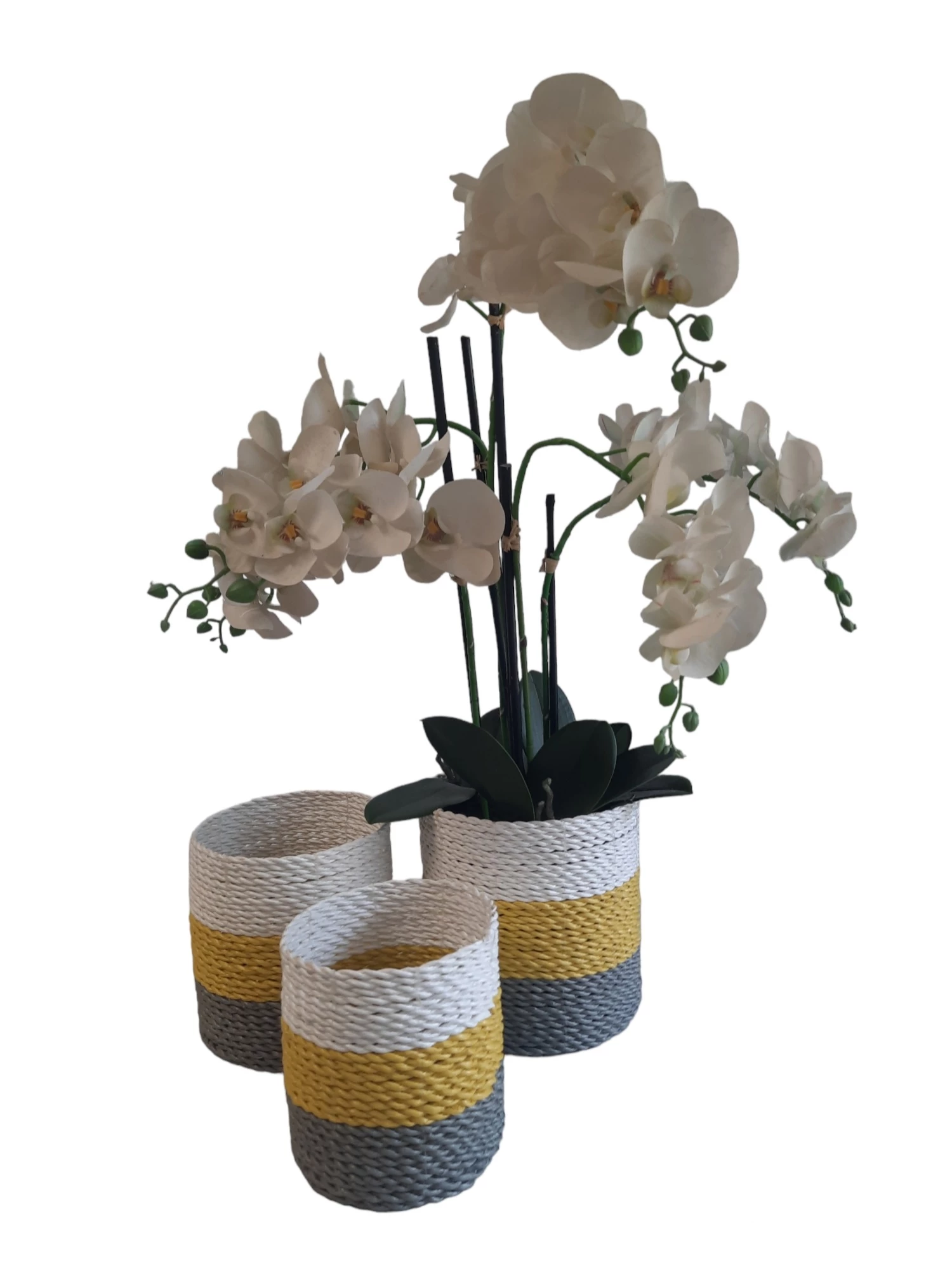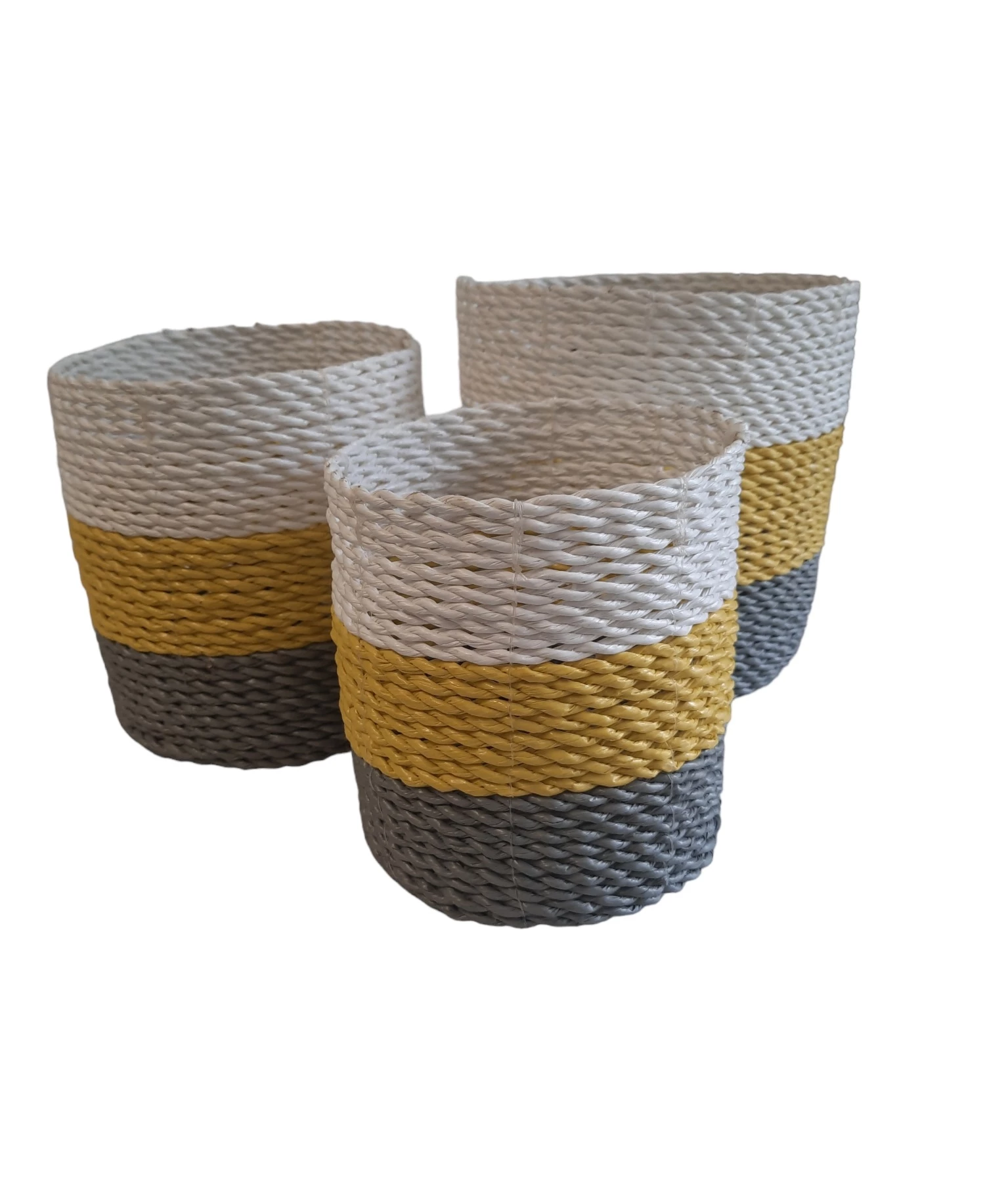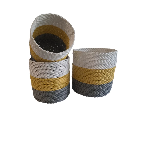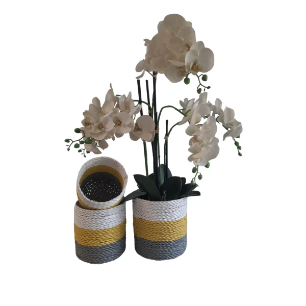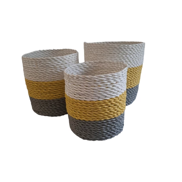 Natuurlijke plantenbakken/ Mandenset Furnilux Collection(3 Stuks)-Naturel/Wit/Geel