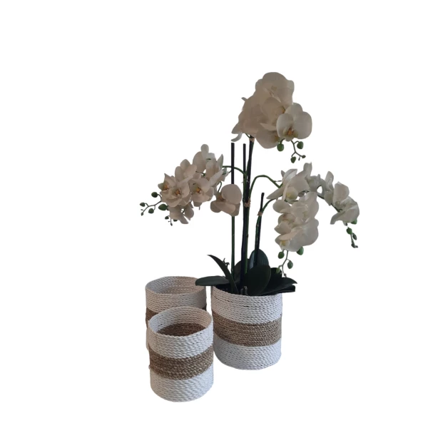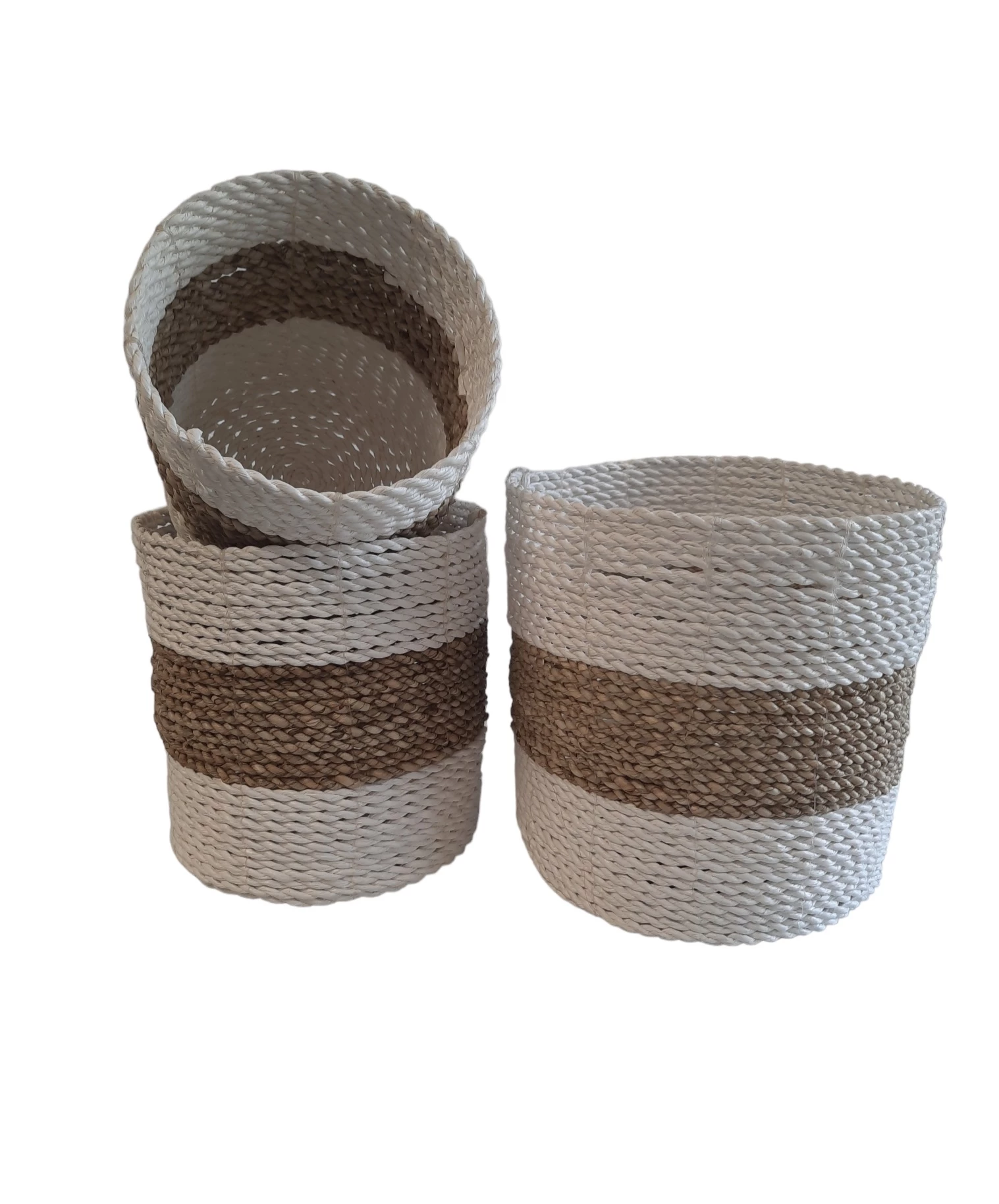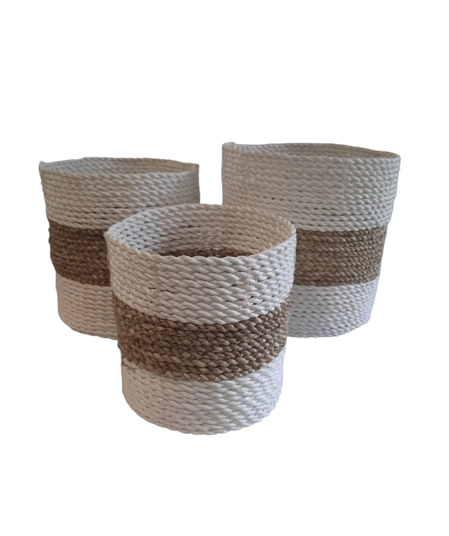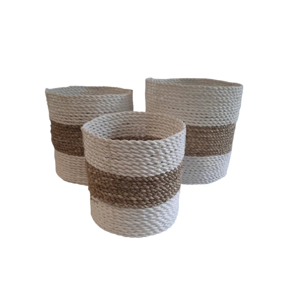 Natuurlijke plantenbakken/ Mandenset Furnilux Collection(3 Stuks)-Wit/Naturel