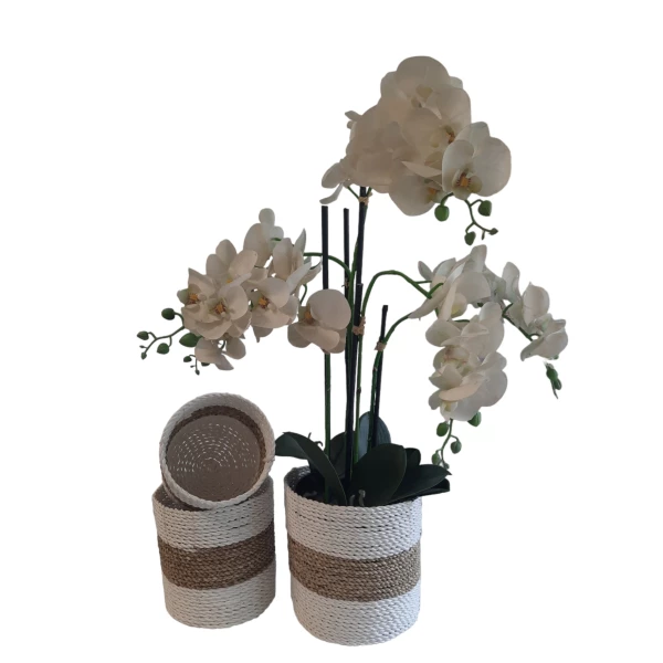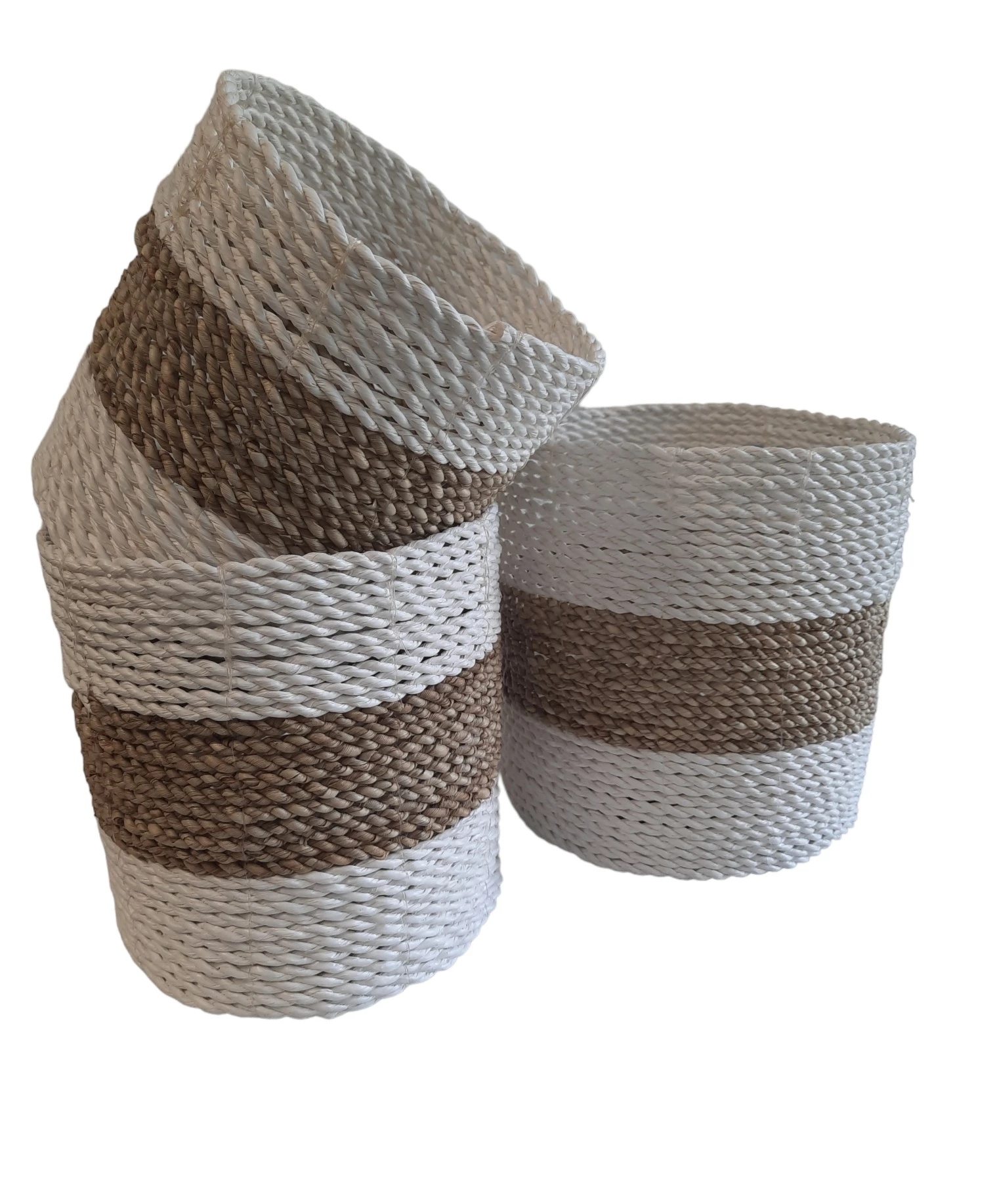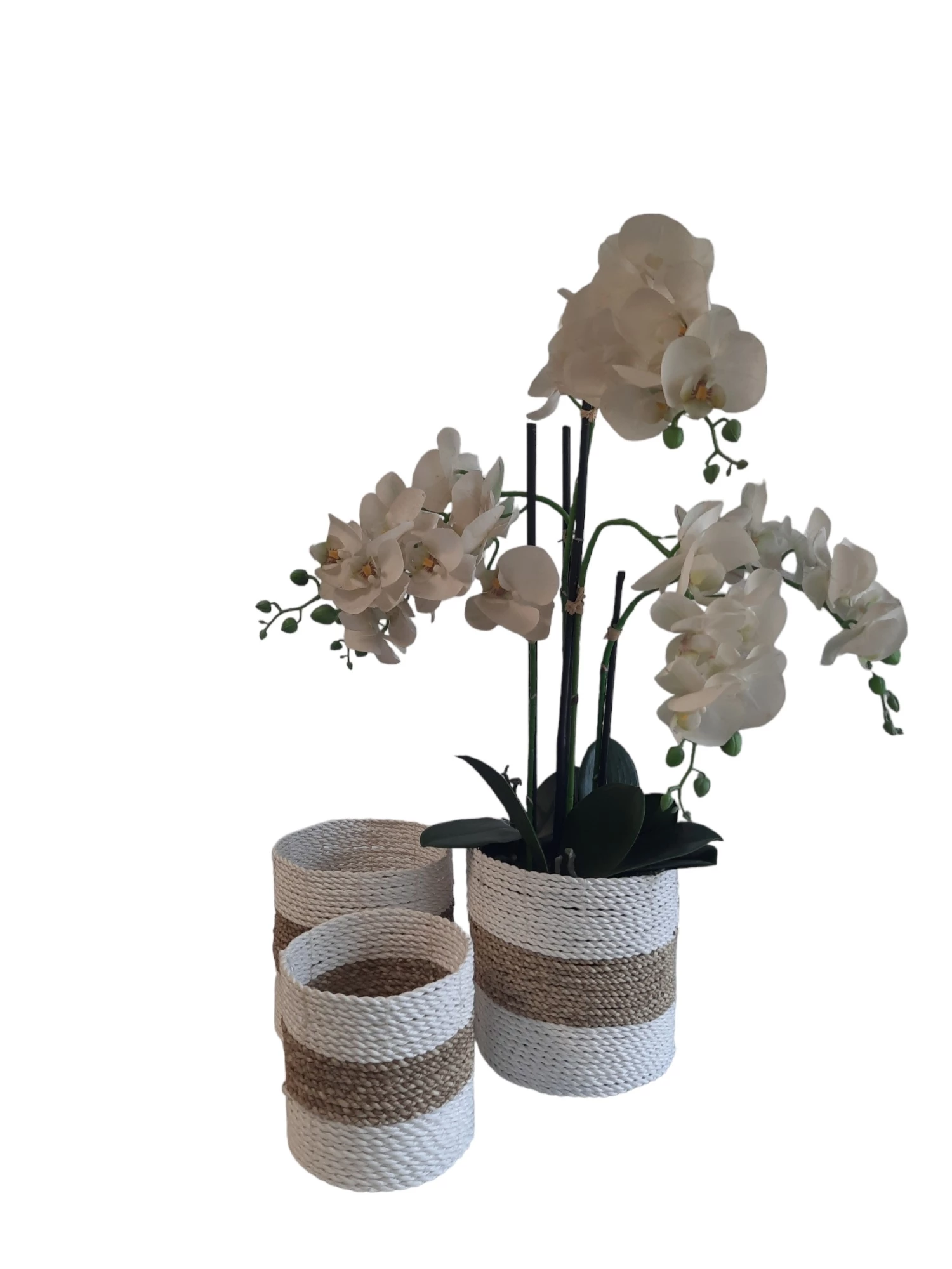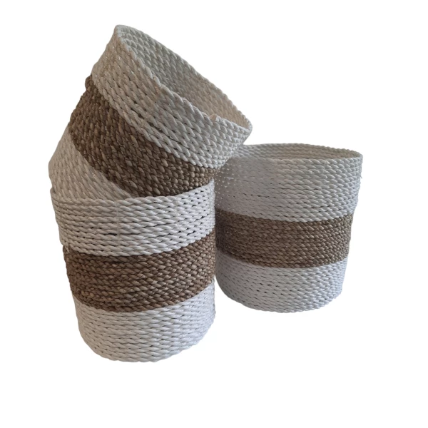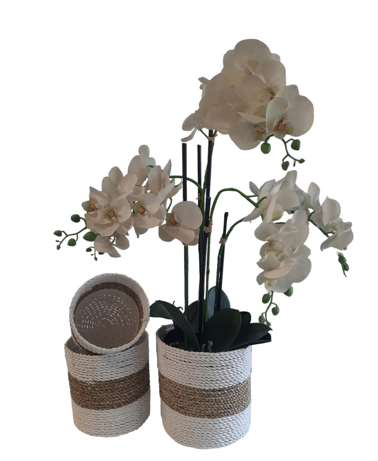 Natuurlijke plantenbakken/ Mandenset Furnilux Collection(3 Stuks)-Wit/Naturel