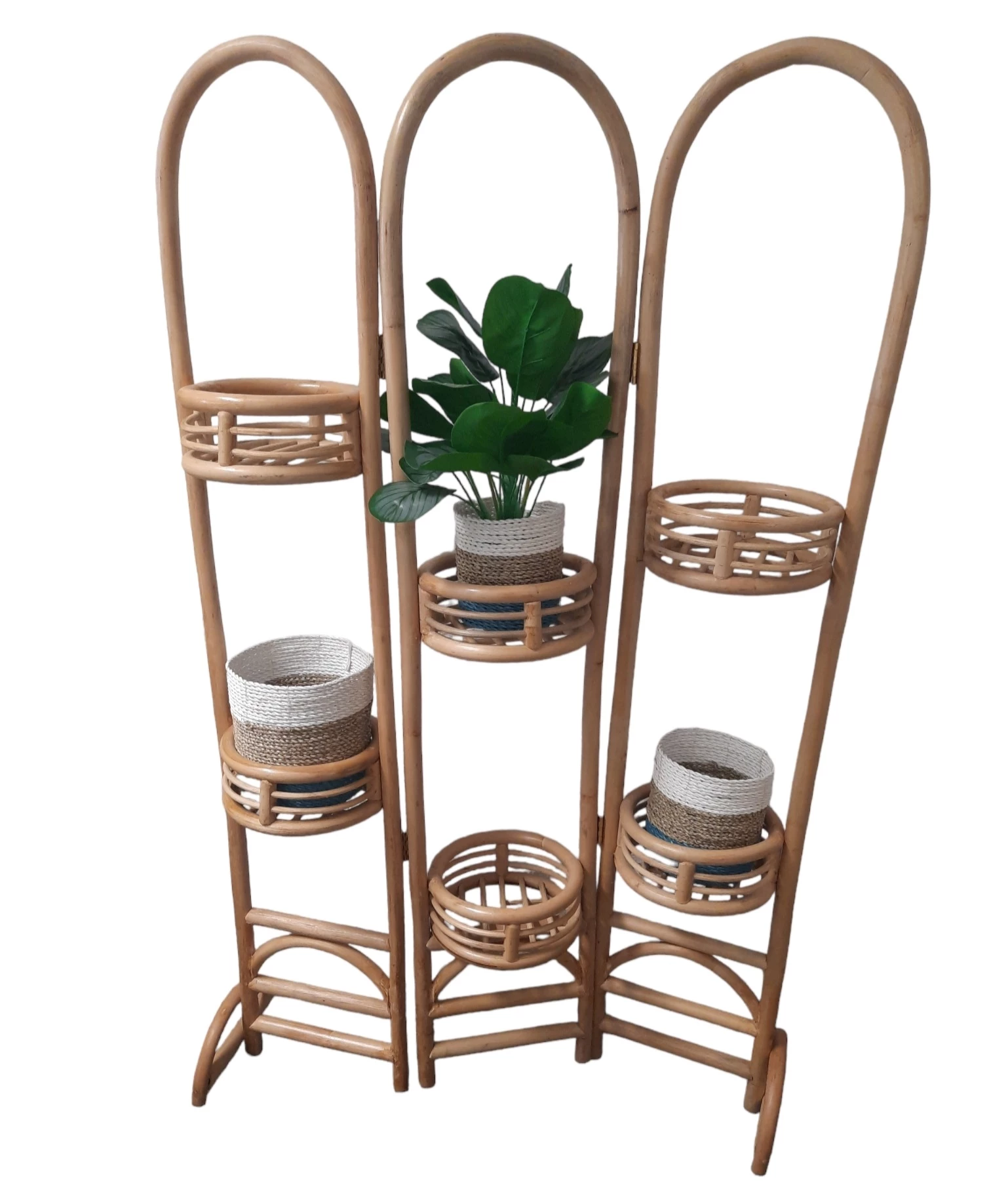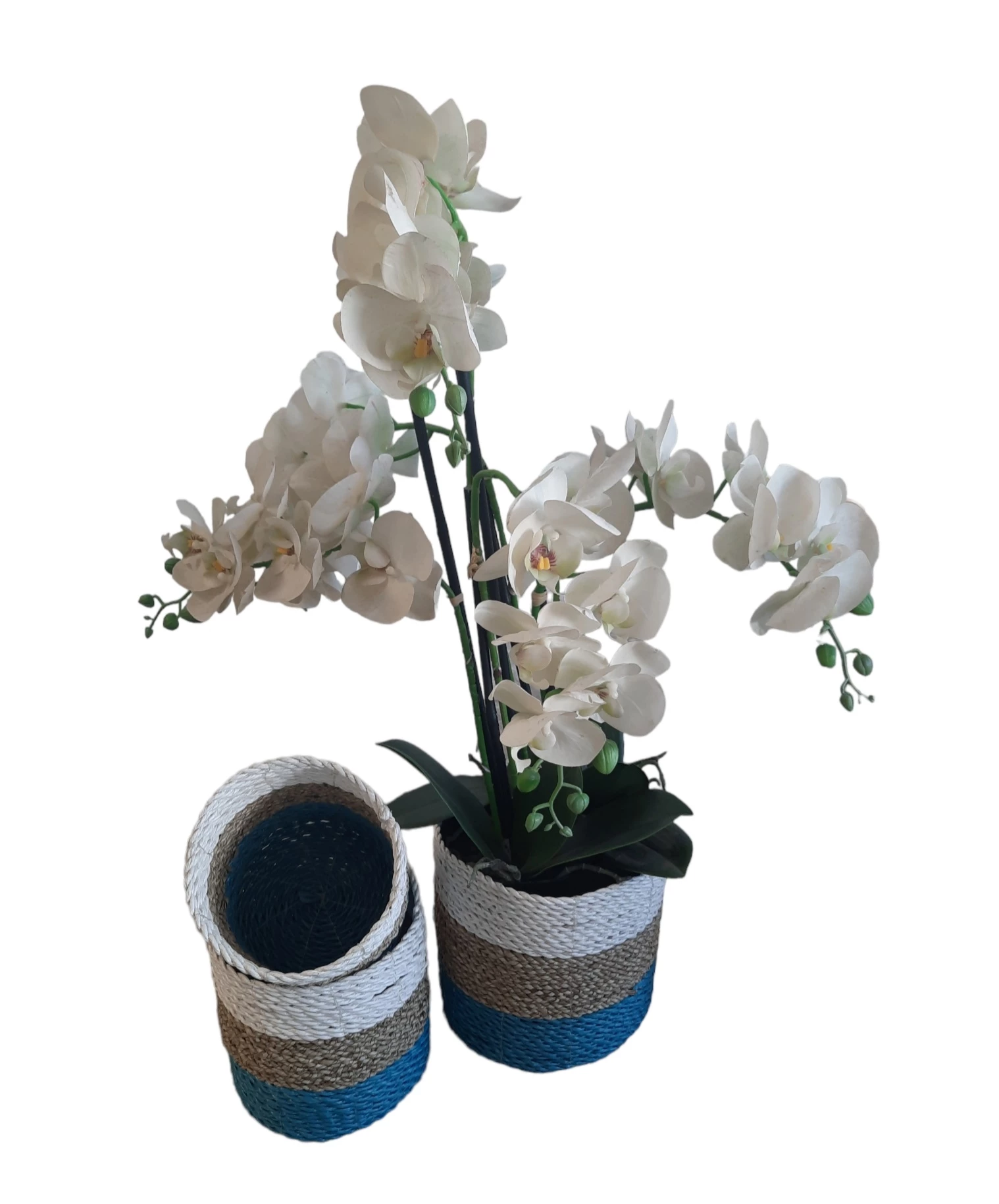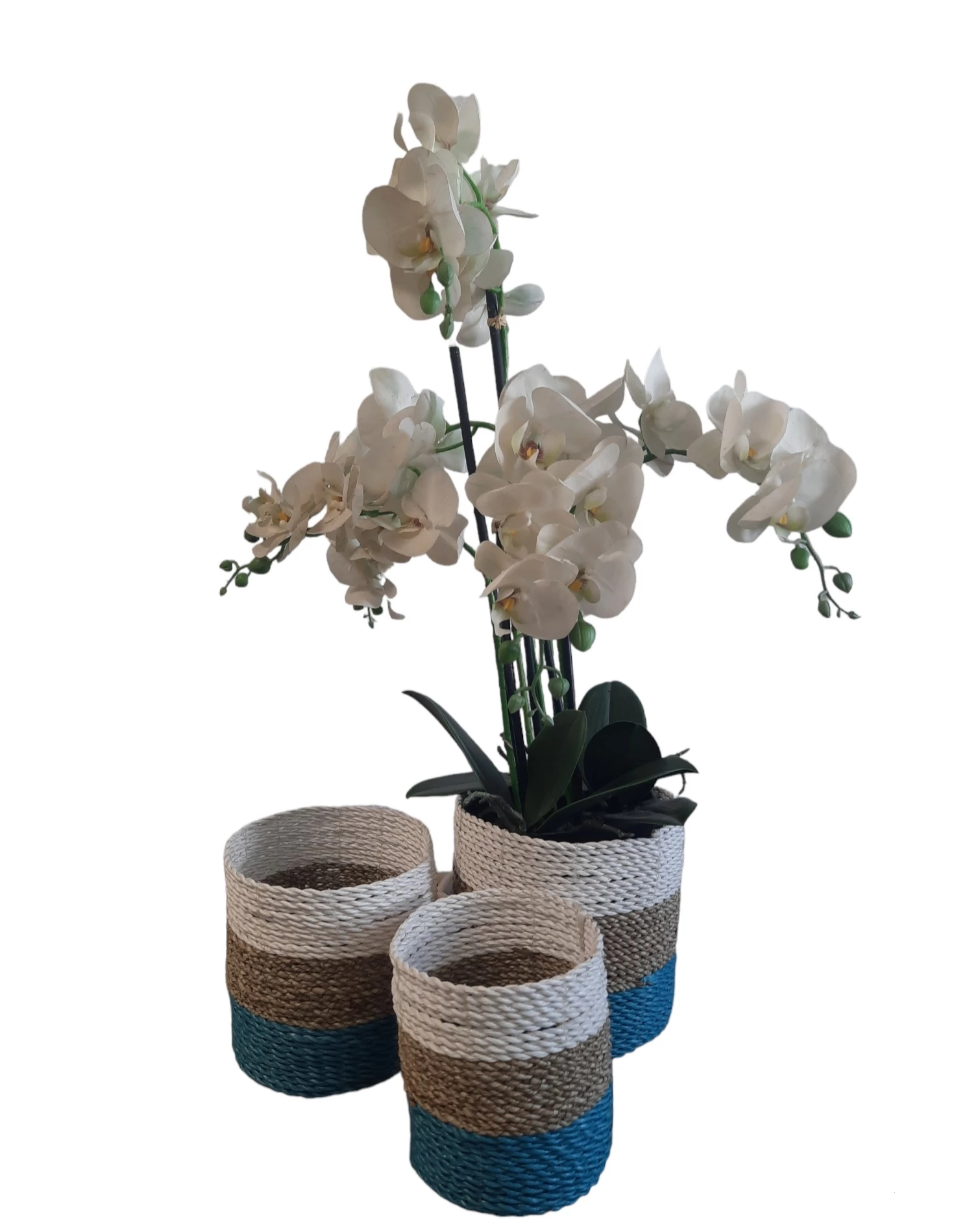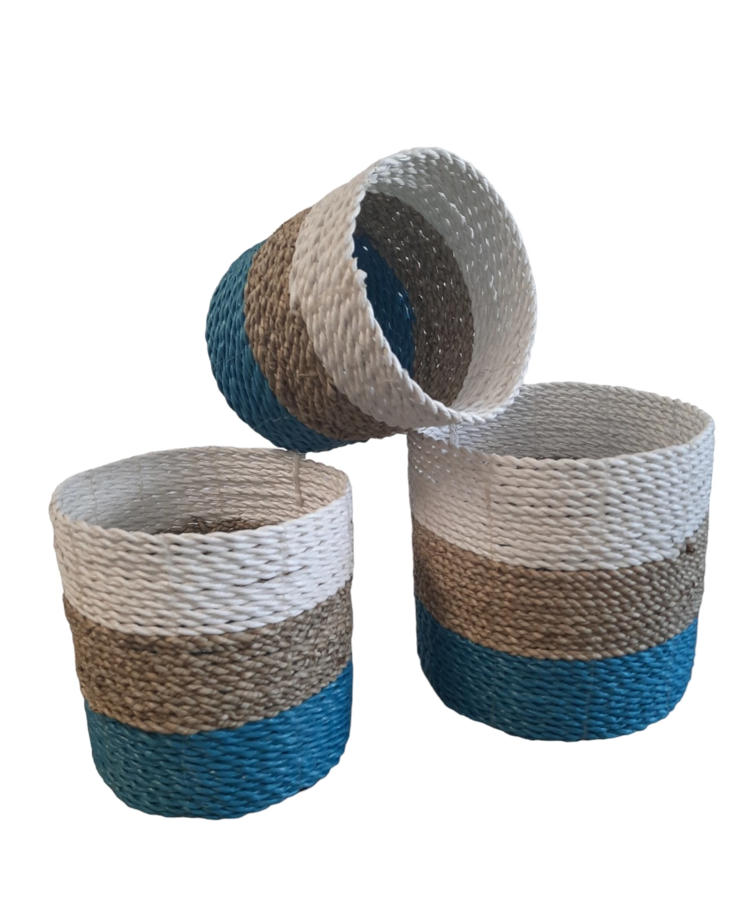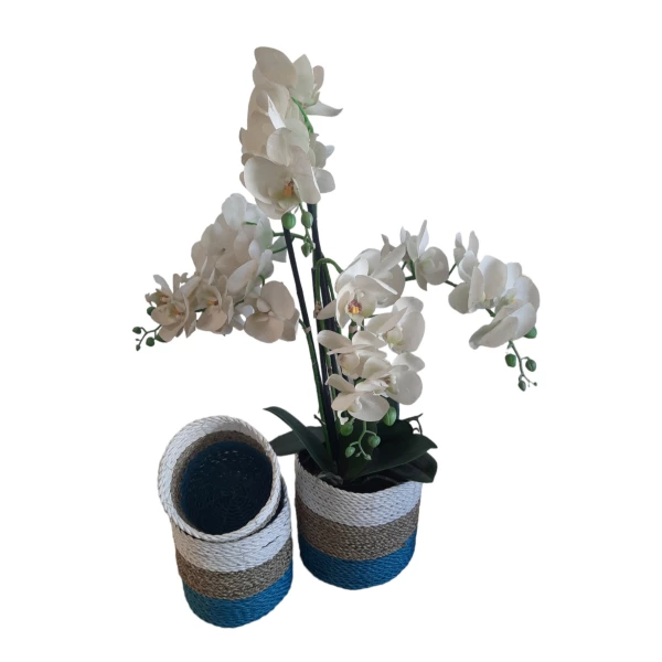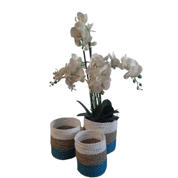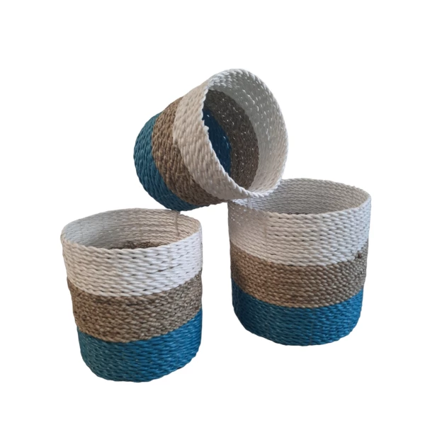 Natuurlijke plantenbakken/ Mandenset Furnilux Collection(3 Stuks)-Wit/Naturel/Blauw