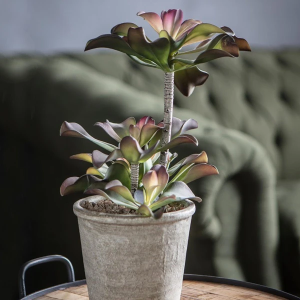 De kunst vetplant Echeveria is natuurgetrouw nagemaakt en heeft geen water of plantenvoeding nodig. Alleen af en toe afstoffen is voldoende om er jarenlang van te genieten.