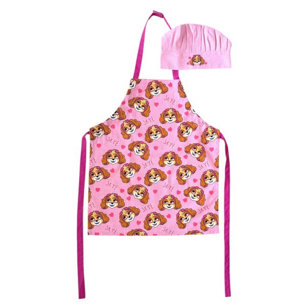 De speelse afbeelding van Skye, het dappere hondje uit Paw Patrol, maakt het een favoriete keuze voor jonge fans van de serie. De bijgeleverde koksmuts voegt een extra speelse touch toe, waardoor je kleine chef-kok zich helemaal in zijn of haar element voelt.