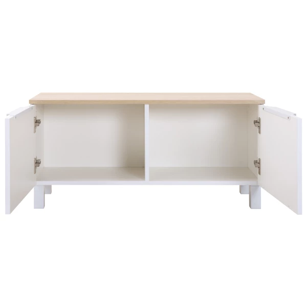 TV-Meubel Sharons choice Milaan Small beschikt over Twee deuren zodat er voldoende opbergmogelijkheden aanwezig zijn. Het tv-meubel is uitgevoerd in wit, waarvan de voorkant van de deuren afgewerkt zijn in mat glans wit. Bij de deuren zit een soft en silent closing systeem.