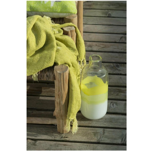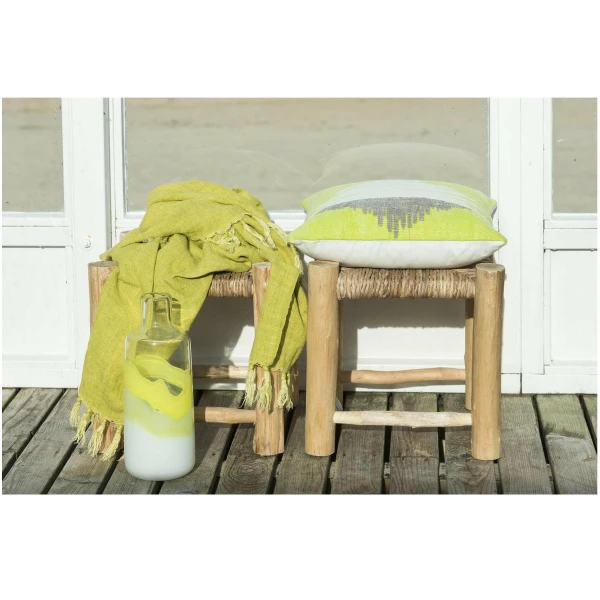 Katoenen Sierkussen in fel limoenkleur. De felle kleur zorgt onmiddellijk voor een zomers gevoel in huis.