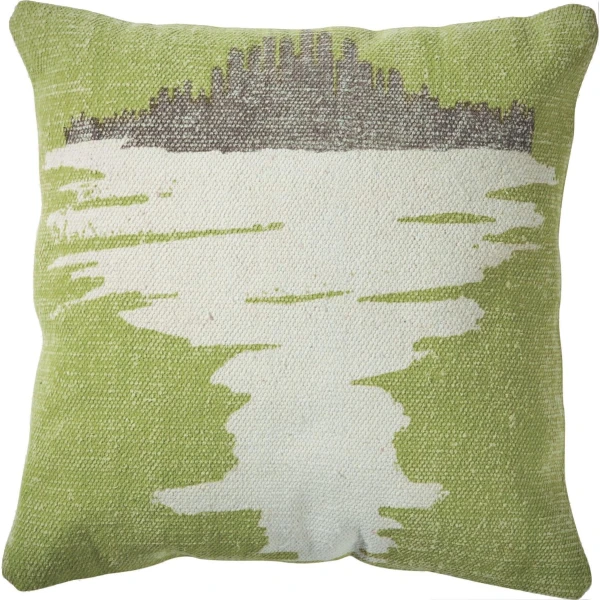 Pomax Virtuel – Sierkussen – 45x45cm – 100% katoen stone washed – Limoen / wit / grijs