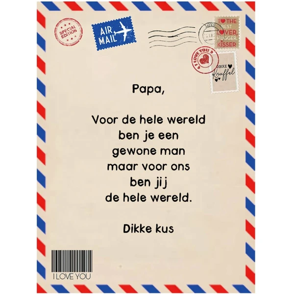 Met deze ontroerende brief-post-deken geef je je vader een uniek en persoonlijk cadeau, wat ook nog een zeer nuttig is. Vader zal zich gewaardeerd voelen als een dappere, moedige en liefdevolle man.