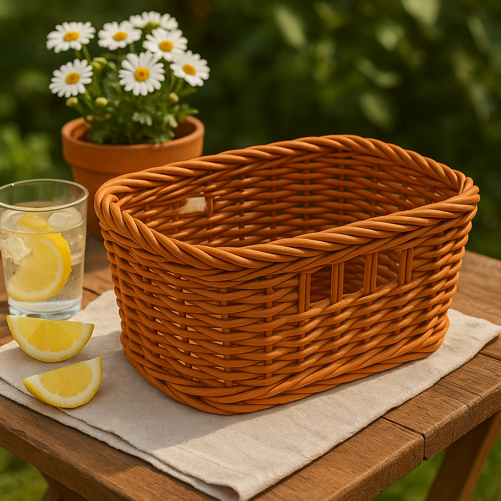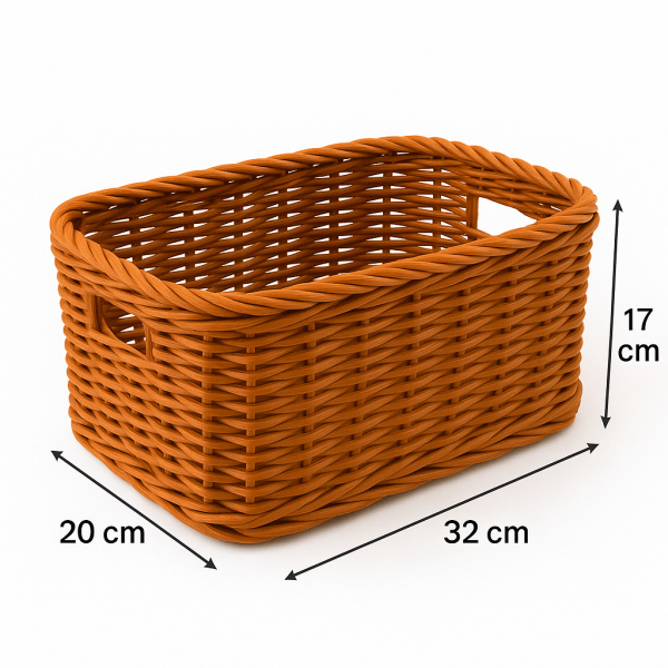 Rechthoekige gevlochten Mand Uit Kunststof Bruin – 32x20x17,5cm